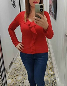 Kadın Kırmızı V Yaka Önü Fırfır Detaylı Örme Bluz Alc-X14363 Kadın Kırmızı V Yaka Önü Fırfır Detaylı Örme Bluz Alc-X14363 alcx14363 42