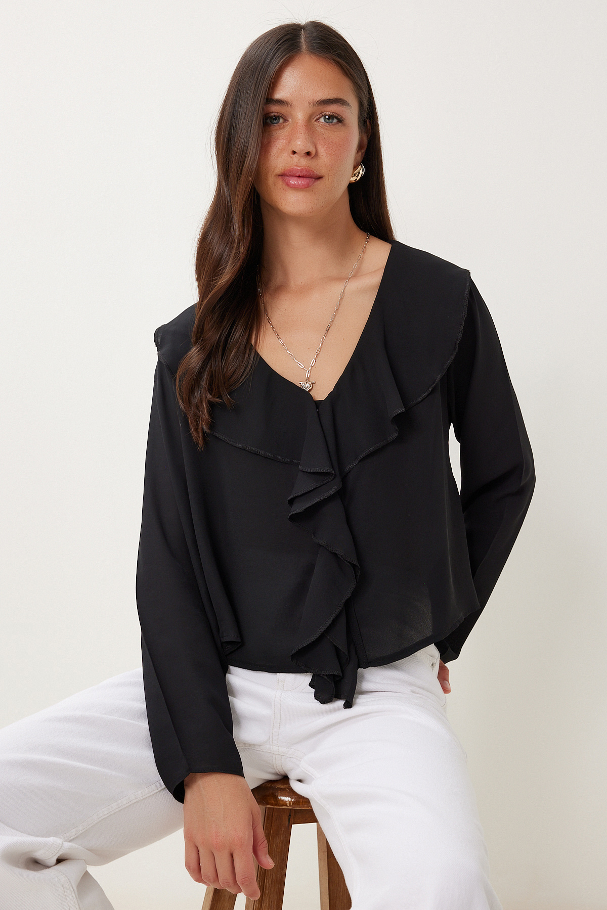 Kadın Bej V Yaka Önü Fırfırlı Bluz Alc-X14361 Kadın Bej V Yaka Önü Fırfırlı Bluz Alc-X14361 alcx14361 40