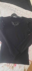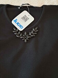 Kadın Siyah Bisiklet Yaka Kolu Fırfırlı Taş İşlemeli Kaşkorse Bluz Alc-X14386 Kadın Siyah Bisiklet Yaka Kolu Fırfırlı Taş İşlemeli Kaşkorse Bluz Alc-X14386 alcx14386 42