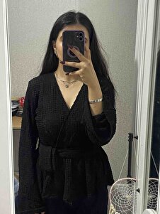 Kadın Siyah Kruvaze Yaka Eteği Fırfırlı Kendinden Kuşaklı Bürümcük Bluz Alc-X14428 Kadın Siyah Kruvaze Yaka Eteği Fırfırlı Kendinden Kuşaklı Bürümcük Bluz Alc-X14428 alcx14428 40
