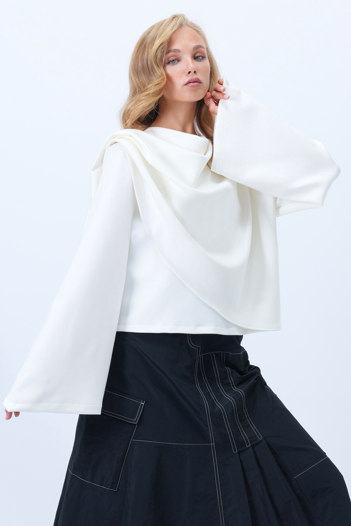 Kadın Siyah Bisiklet Yaka Kendinden Şal Detaylı Geniş Kesim Tasarım Bluz Alc-X14420 Kadın Siyah Bisiklet Yaka Kendinden Şal Detaylı Geniş Kesim Tasarım Bluz Alc-X14420 alcx14420 40