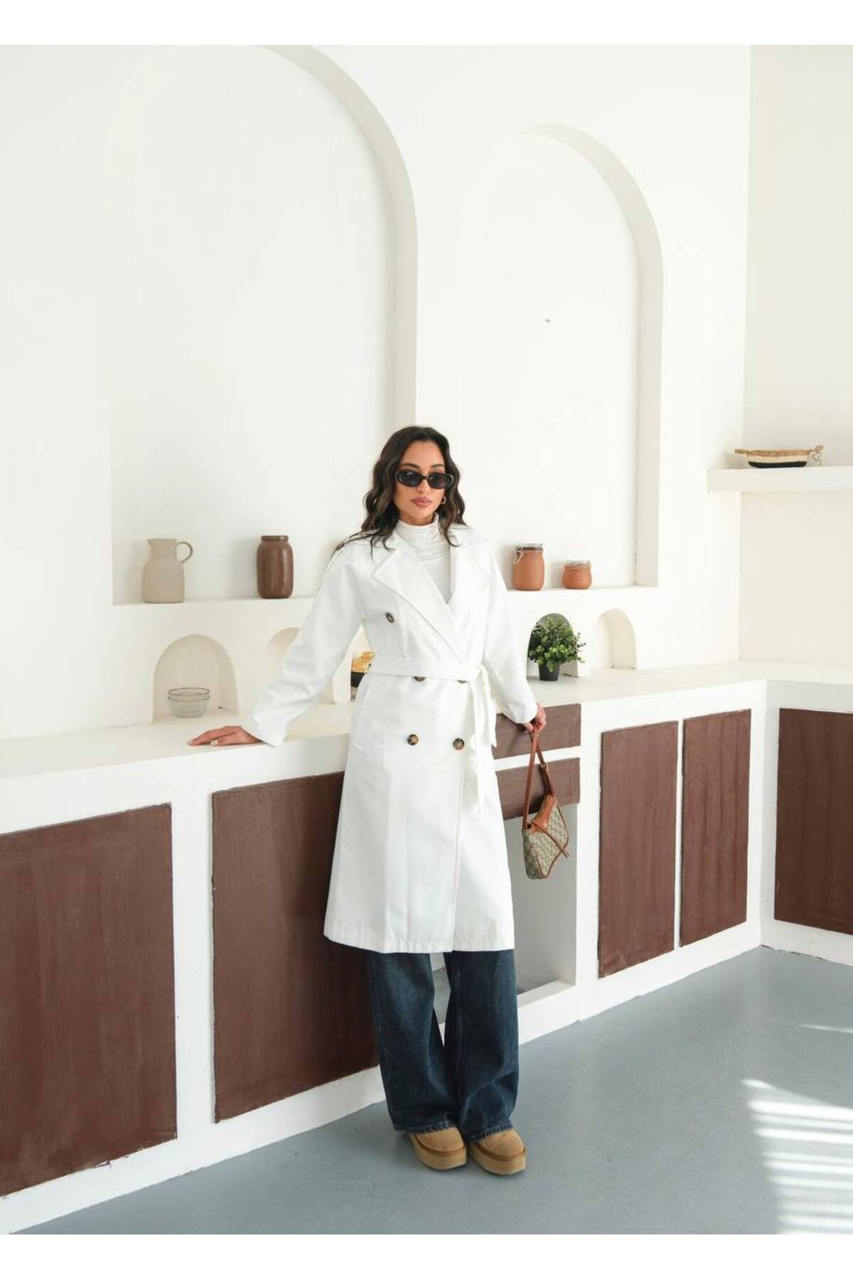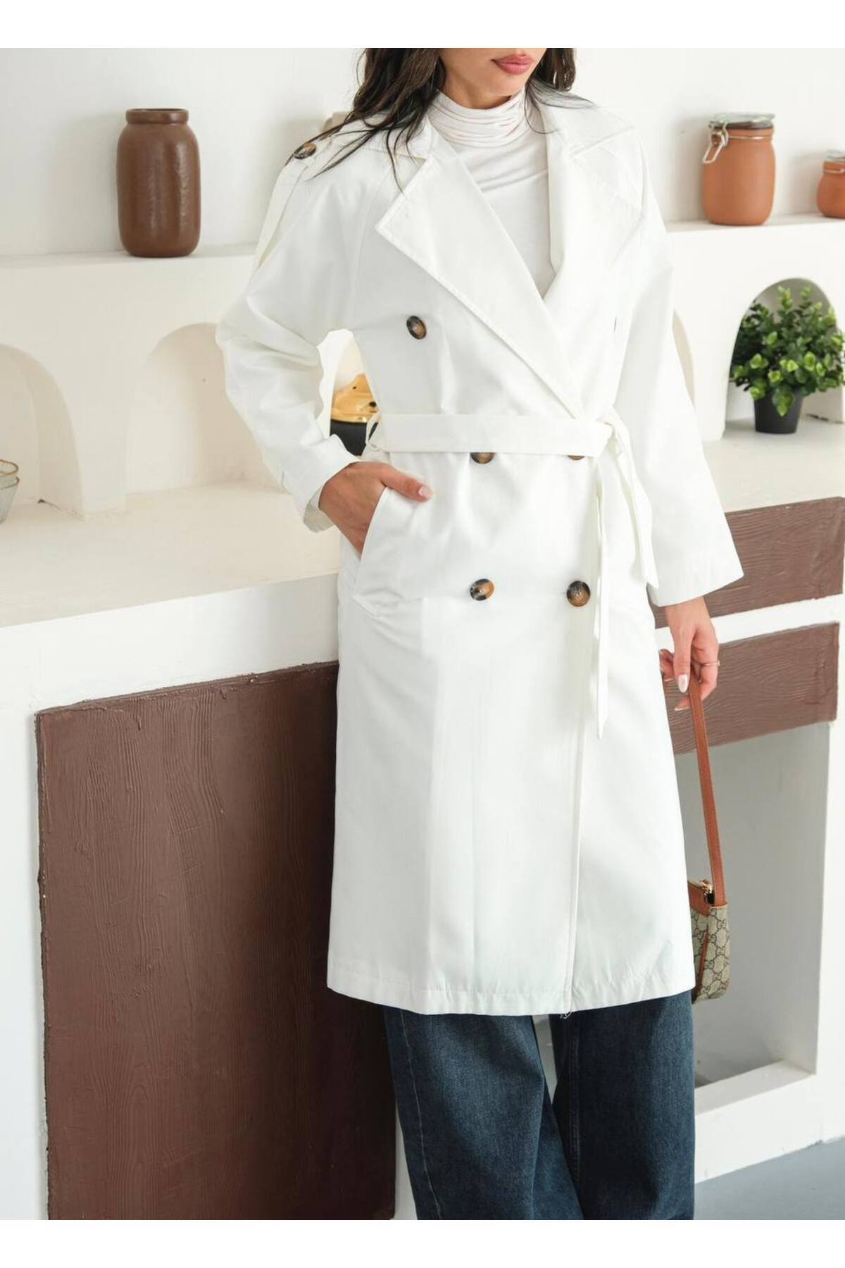 Kadın Premium Düğmeli Trençkot Kadın Premium Düğmeli Trençkot unk78189 L