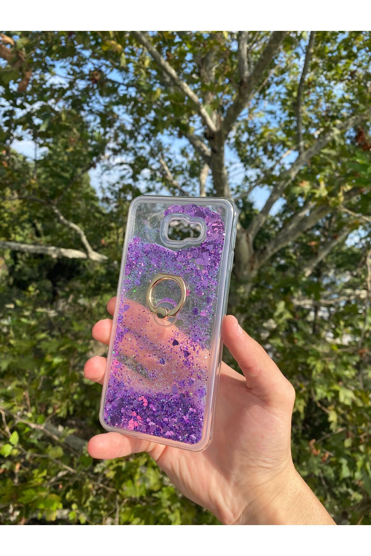 Samsung Galaxy J4 Plus Uyumlu Sulu Simli Yüzüklü Standlı Parlak Silikon Kılıf Mor Samsung Galaxy J4 Plus Uyumlu Sulu Simli Yüzüklü Standlı Parlak Silikon Kılıf Mor J4PLS تک سایز