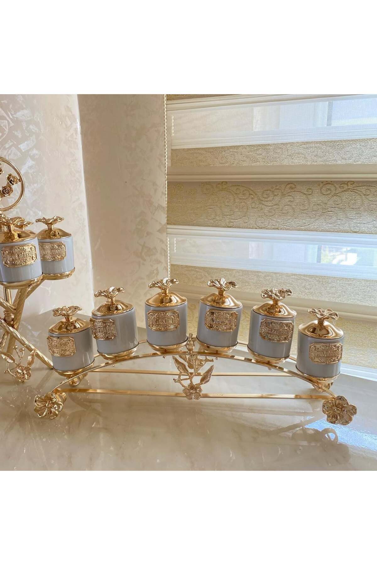 GOLD PİRİNÇ JAPONGÜL AYAKLI LÜX 3’LÜ KAVANOZ ve MİDİ 6’LI CAM BAHARATLİK 2’Lİ SET GOLD PİRİNÇ JAPONGÜL AYAKLI LÜX 3’LÜ KAVANOZ ve MİDİ 6’LI CAM BAHARATLİK 2’Lİ SET 5674356Y تک سایز