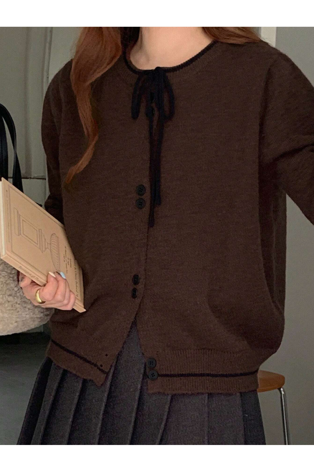 Kadın Çifter Düğmeli Bağlamalı Basic Triko Hırka Kadın Çifter Düğmeli Bağlamalı Basic Triko Hırka MK4003 Standart