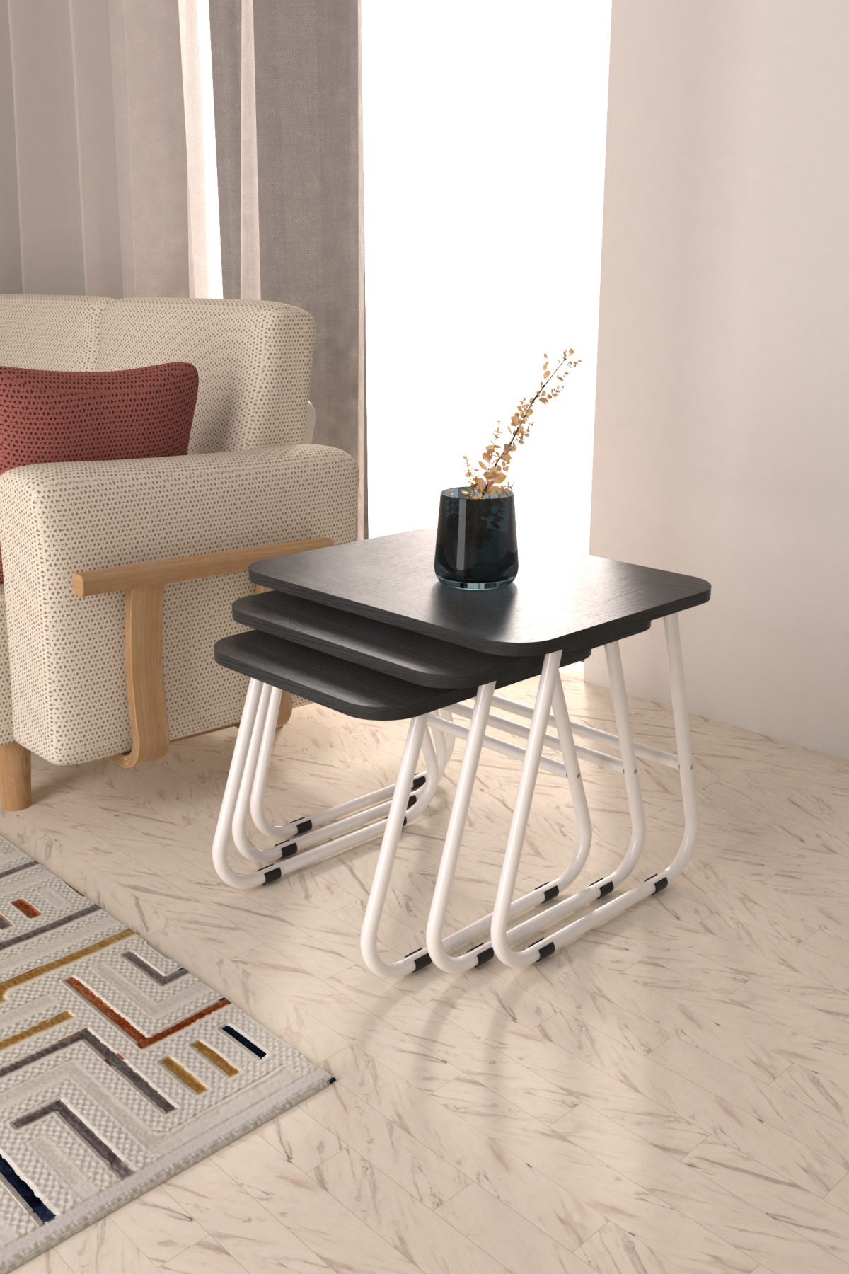 Zigana Çok Amaçlı Vizon Metal Ayak 3'lü Traverten MDF Zigon Sehpa Zigana Çok Amaçlı Vizon Metal Ayak 3'lü Traverten MDF Zigon Sehpa BR57-ZİGANA تک سایز