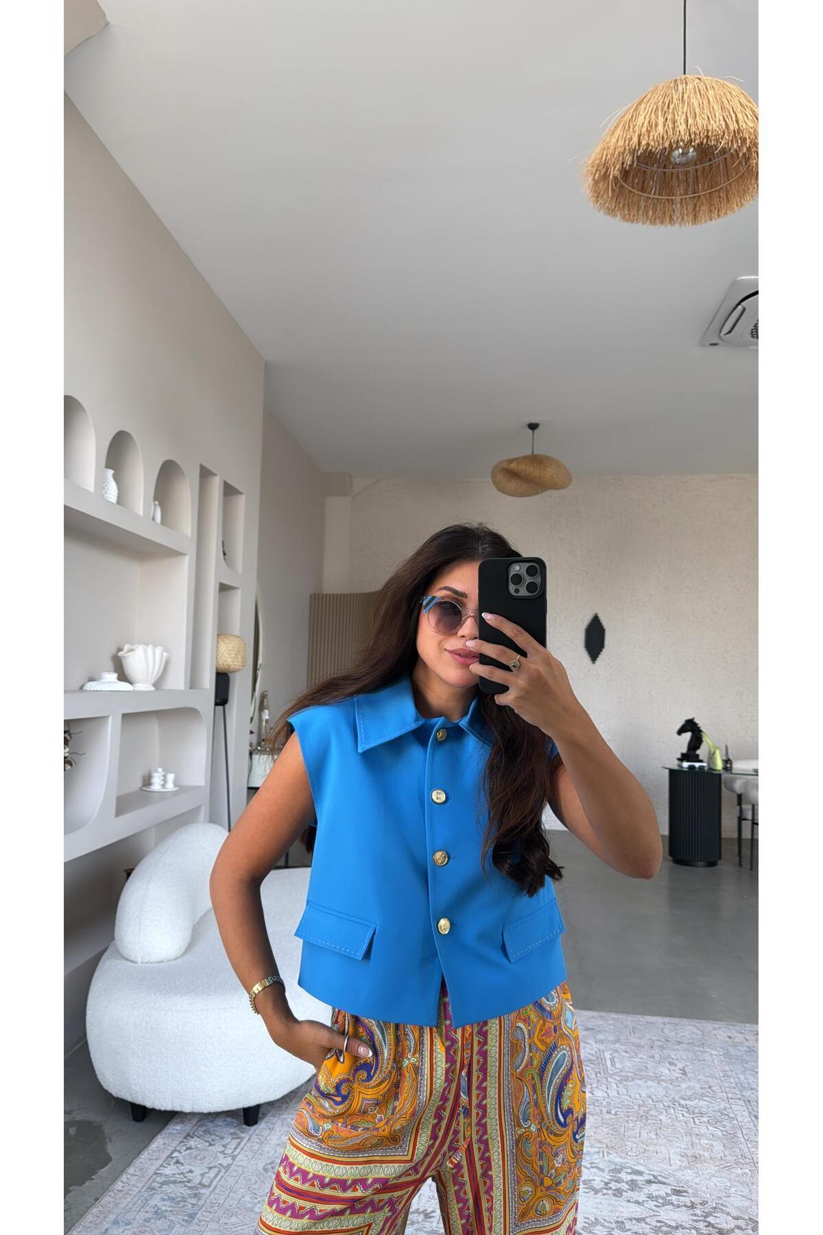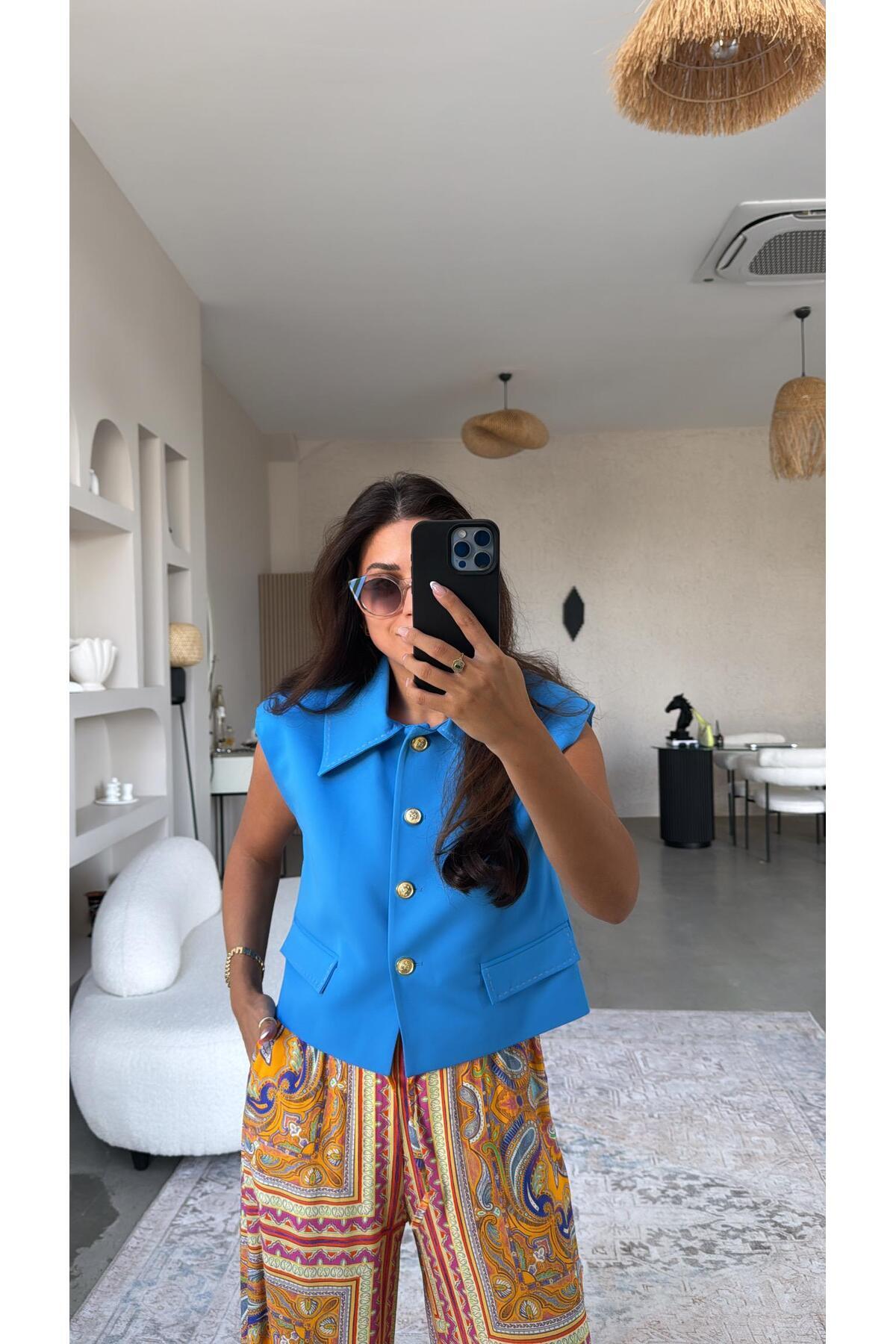 Turkuaz Gold Düğmeli Vatkalı Yelek Turkuaz Gold Düğmeli Vatkalı Yelek TX5B73BAD84835 L