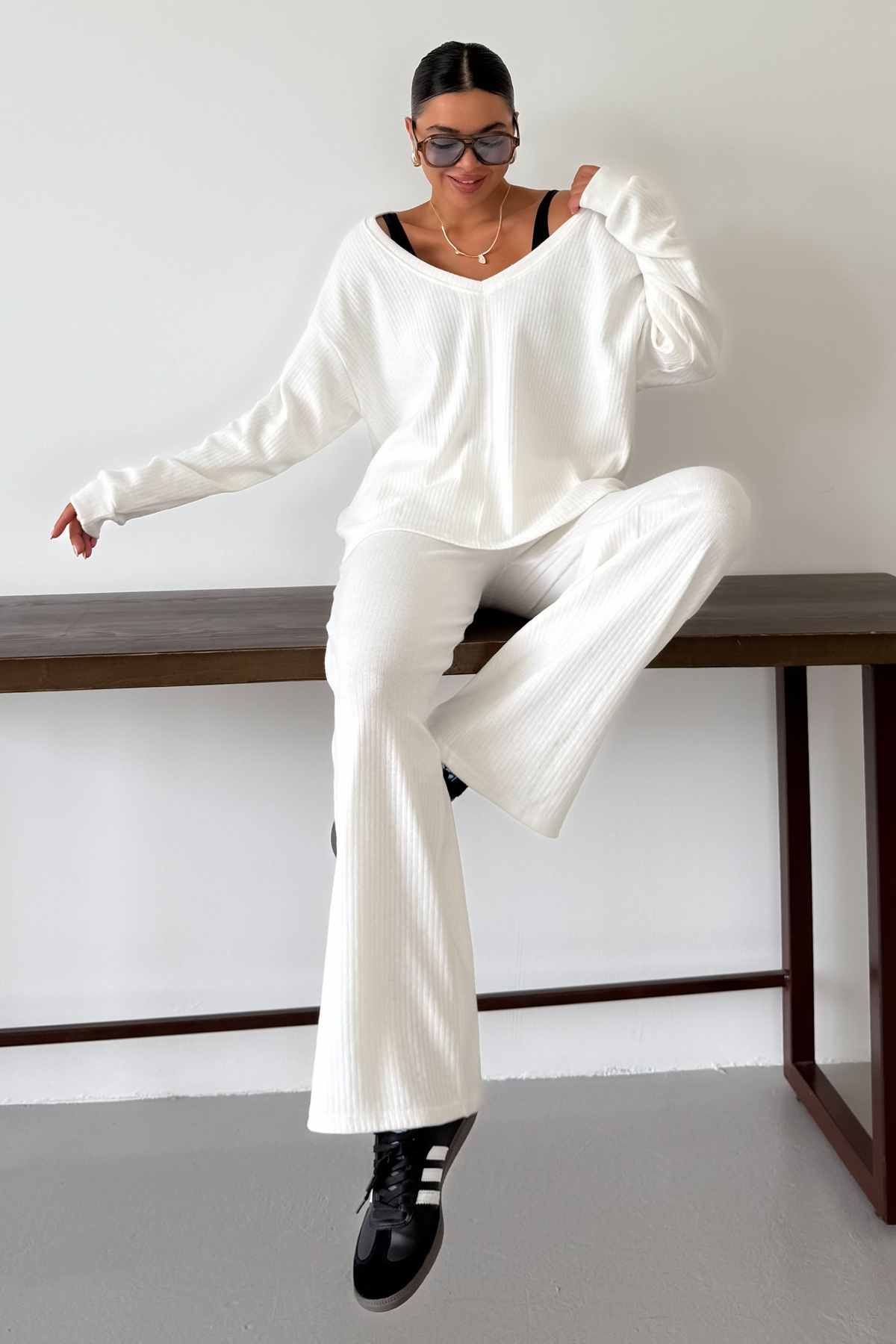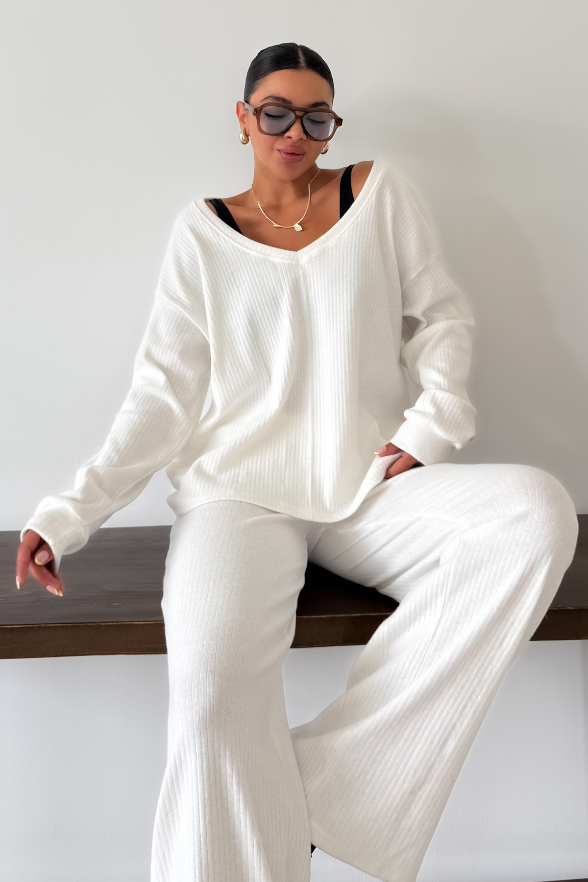 Kadın Beyaz Geniş V Yaka Uzun Kollu Alt-Üst Pantolonlu İnterlok Takım Kadın Beyaz Geniş V Yaka Uzun Kollu Alt-Üst Pantolonlu İnterlok Takım KN-VYakTk2 XL