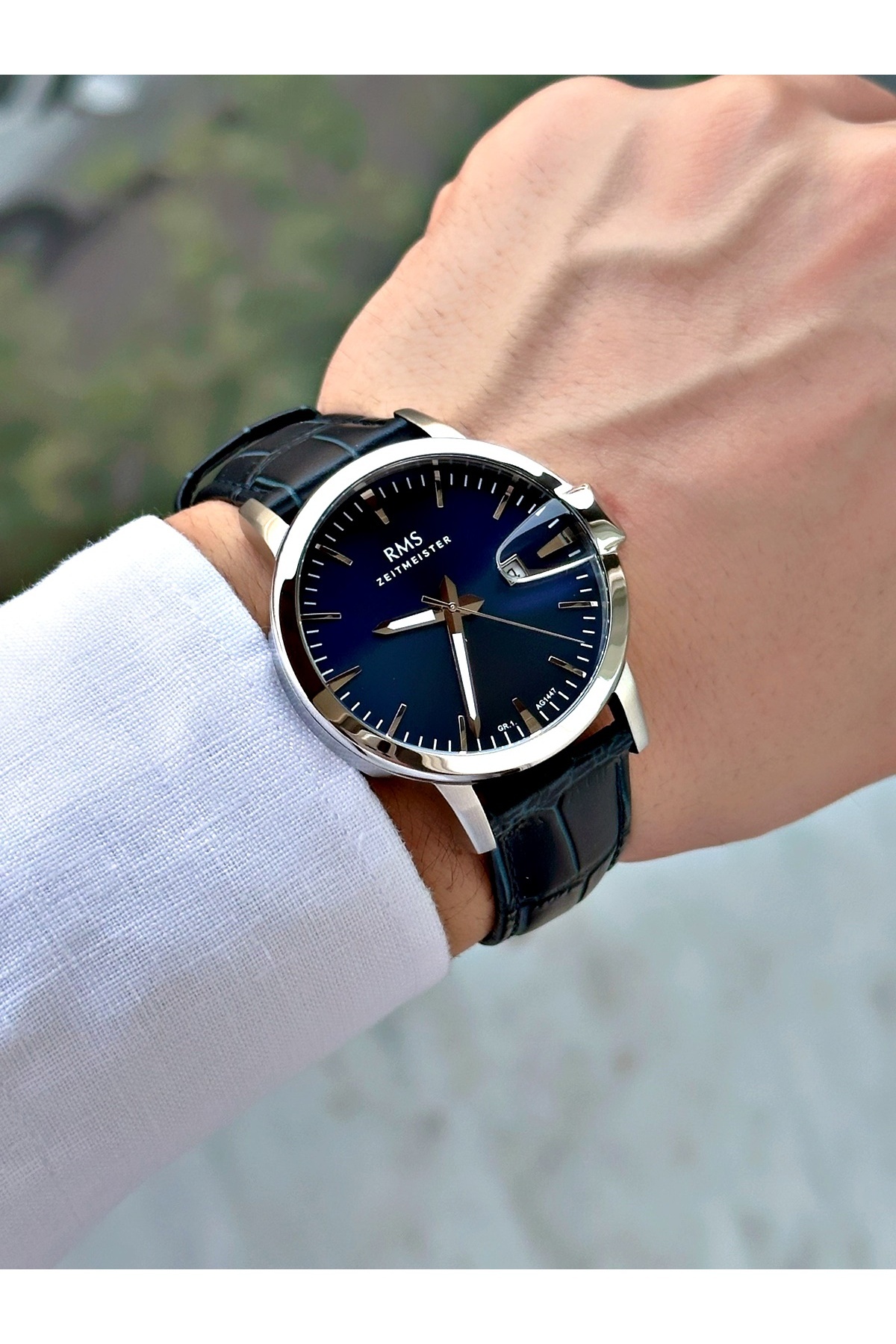 Özel Tasarım Deri Kordon Lacivert-Gümüş Renk Çelik Kasa Erkek Kol Saati 1447.03MR Özel Tasarım Deri Kordon Lacivert-Gümüş Renk Çelik Kasa Erkek Kol Saati 1447.03MR 1447MR تک سایز