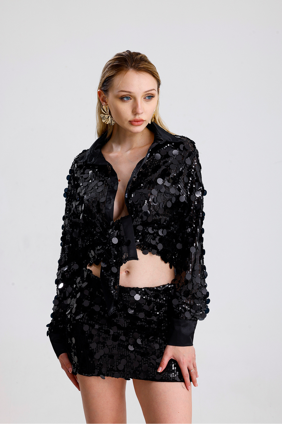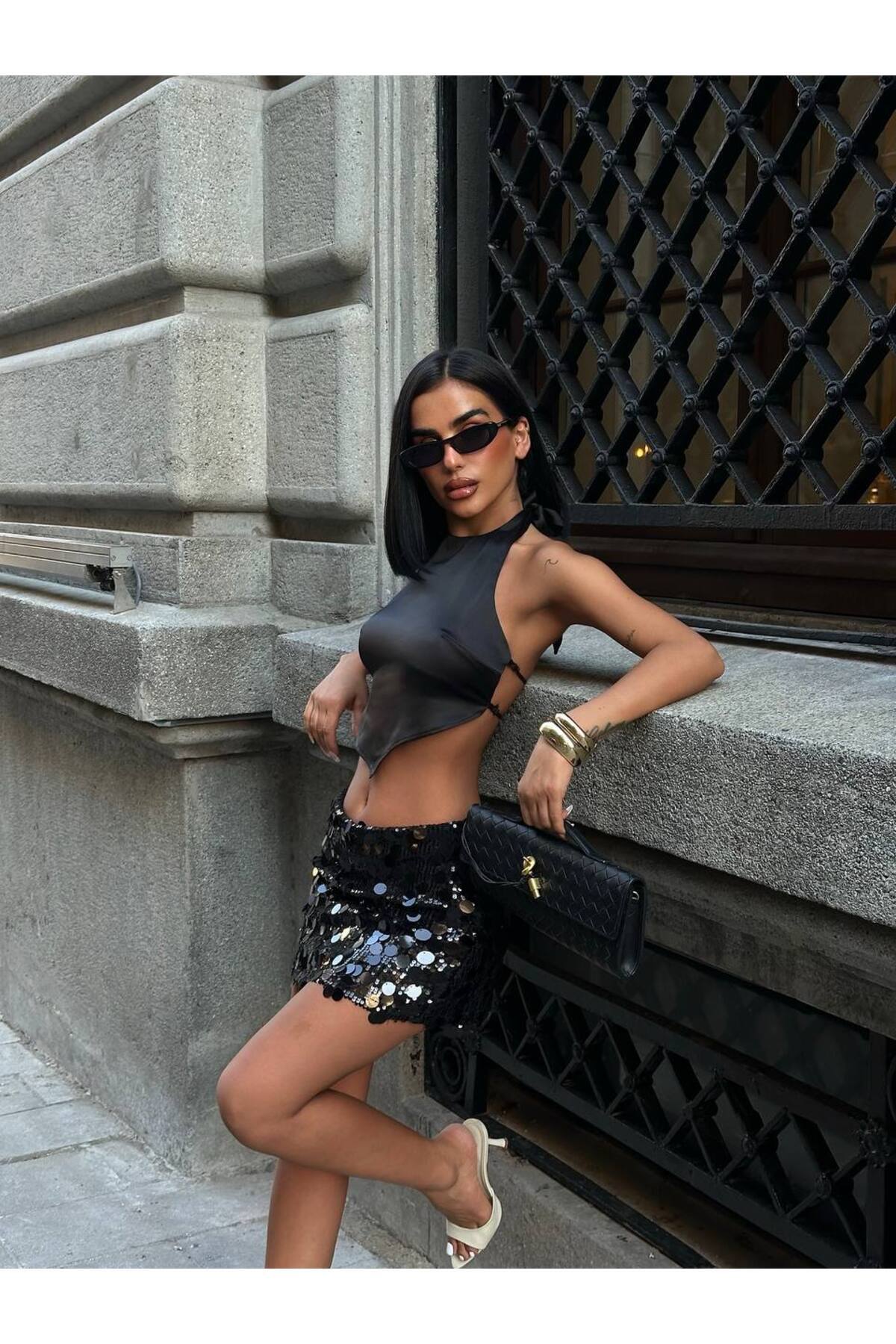 Astarlı Pul Detaylı Abiye Payet Mini Etek | ETK36397 Siyah Astarlı Pul Detaylı Abiye Payet Mini Etek | ETK36397 Siyah 42