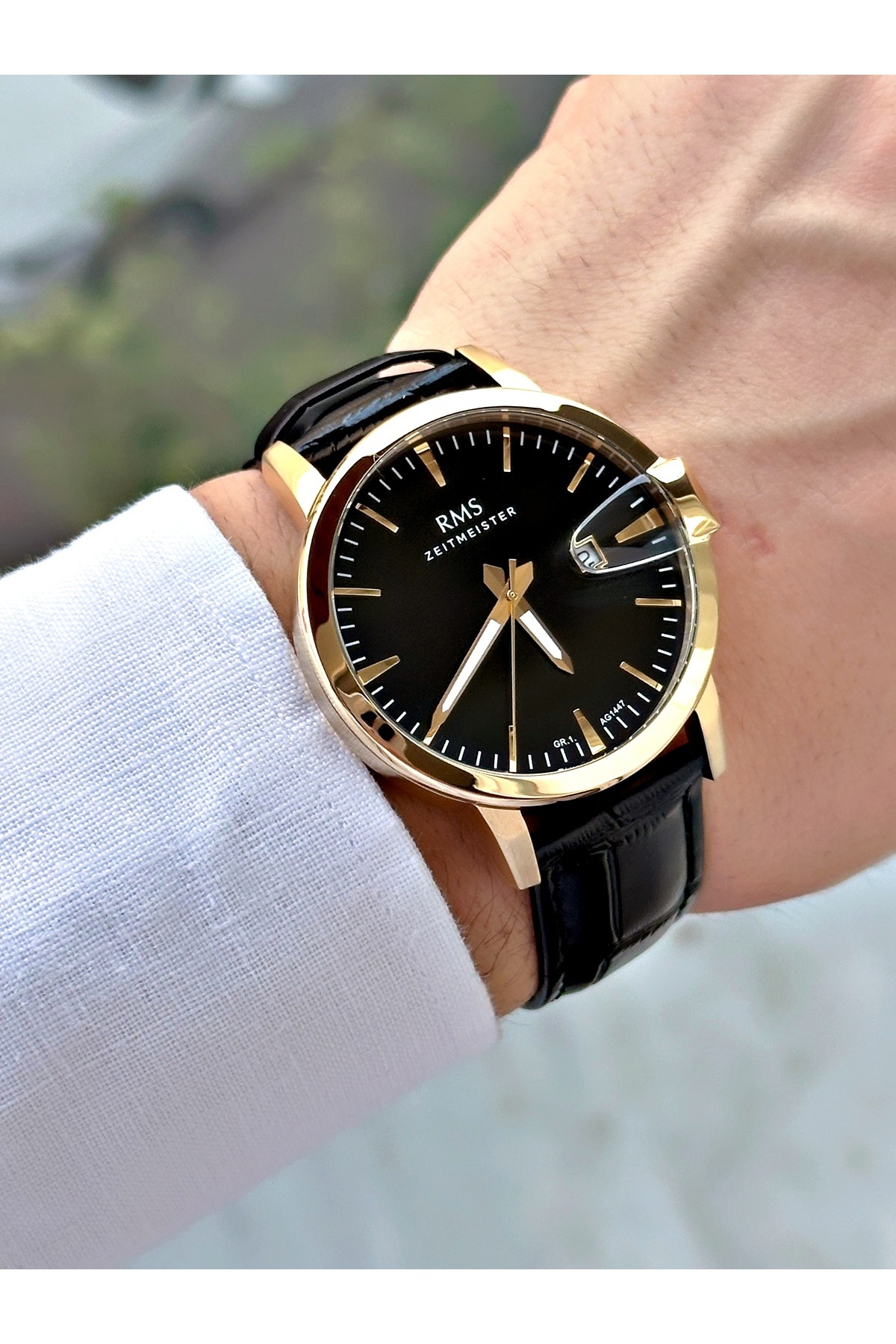 Özel Tasarım Deri Kordon Siyah-Altın Renk Çelik Kasa Erkek Kol Saati 1447.04MR Özel Tasarım Deri Kordon Siyah-Altın Renk Çelik Kasa Erkek Kol Saati 1447.04MR 1447MR تک سایز