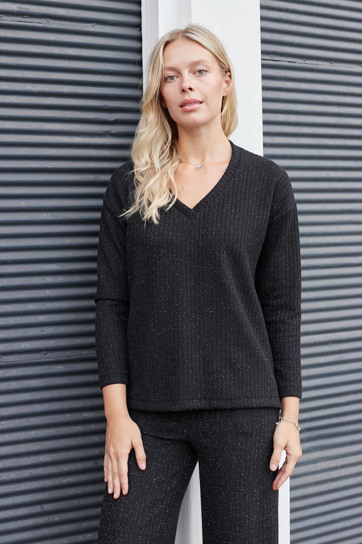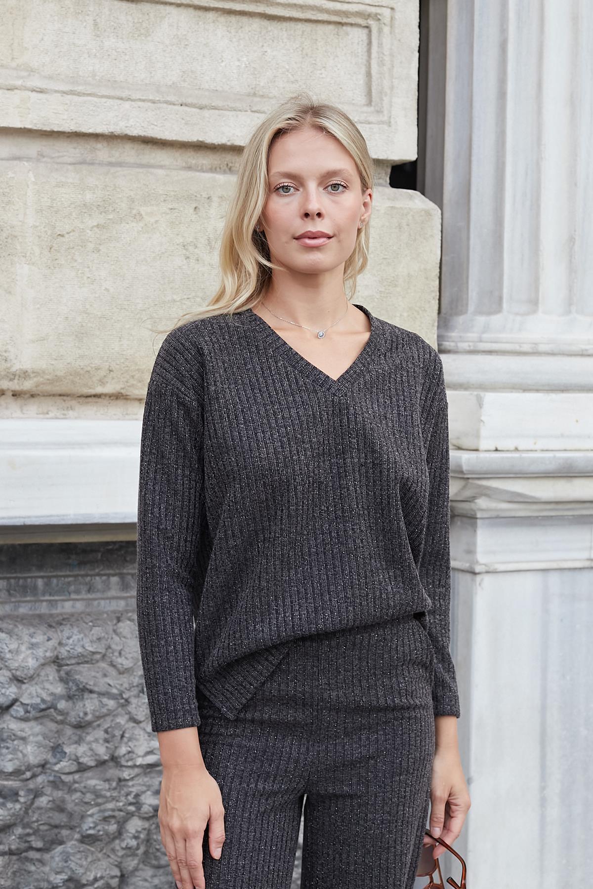 Kadın Simli Kaşkorse V Yaka Düşük Omuzlu Uzun Kol Yırtmaçlı Bluz -Bordo Kadın Simli Kaşkorse V Yaka Düşük Omuzlu Uzun Kol Yırtmaçlı Bluz -Bordo 20549 XL