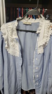 Kadın Mavi Yakası Ve Manşeti Güpürlü Çizgili Dokuma Gömlek Vgn-X7828 Kadın Mavi Yakası Ve Manşeti Güpürlü Çizgili Dokuma Gömlek Vgn-X7828 VGN-X7828 L