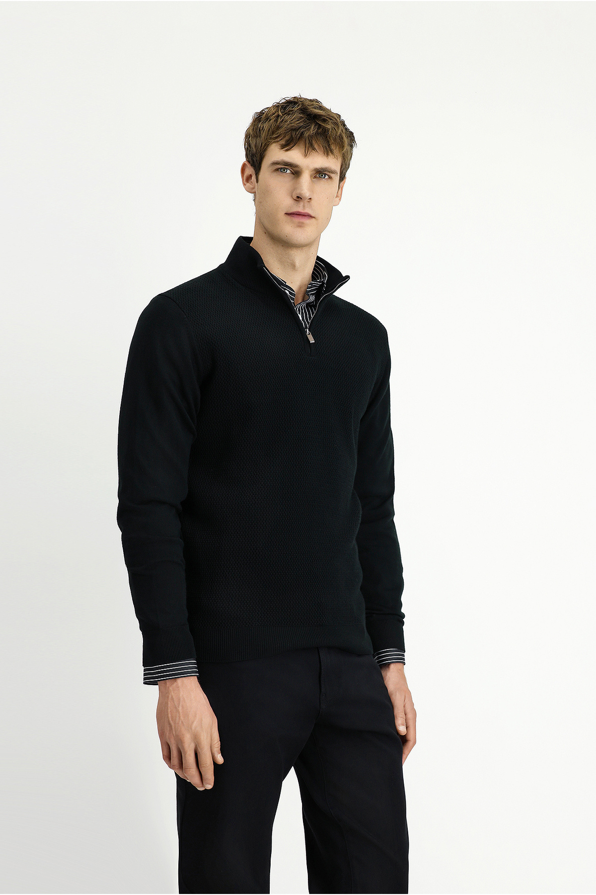 Yarım Balıkçı Yaka Regular Fit Desenli Fermuarlı Yünlü Triko Kazak Yarım Balıkçı Yaka Regular Fit Desenli Fermuarlı Yünlü Triko Kazak KK26DDM0DS001 2XL
