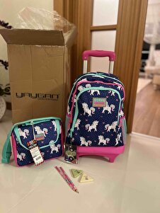 Kids Lacivert Pembe Unicorn Desenli Üç Bölmeli Çekçekli Sırt Çantası 23366 Kids Lacivert Pembe Unicorn Desenli Üç Bölmeli Çekçekli Sırt Çantası 23366 K121.1 تک سایز