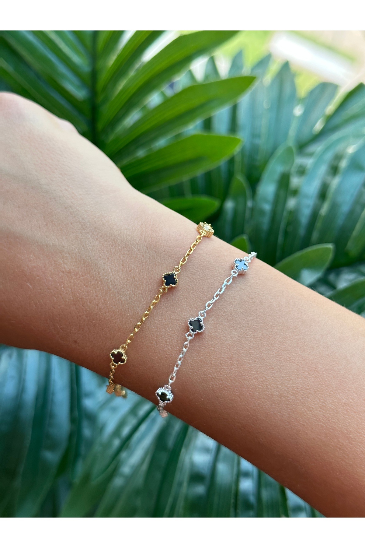 925 AYAR GÜMÜŞ SİYAH MİNİ YONCA BİLEKLİK 925 AYAR GÜMÜŞ SİYAH MİNİ YONCA BİLEKLİK ARG-5042 تک سایز