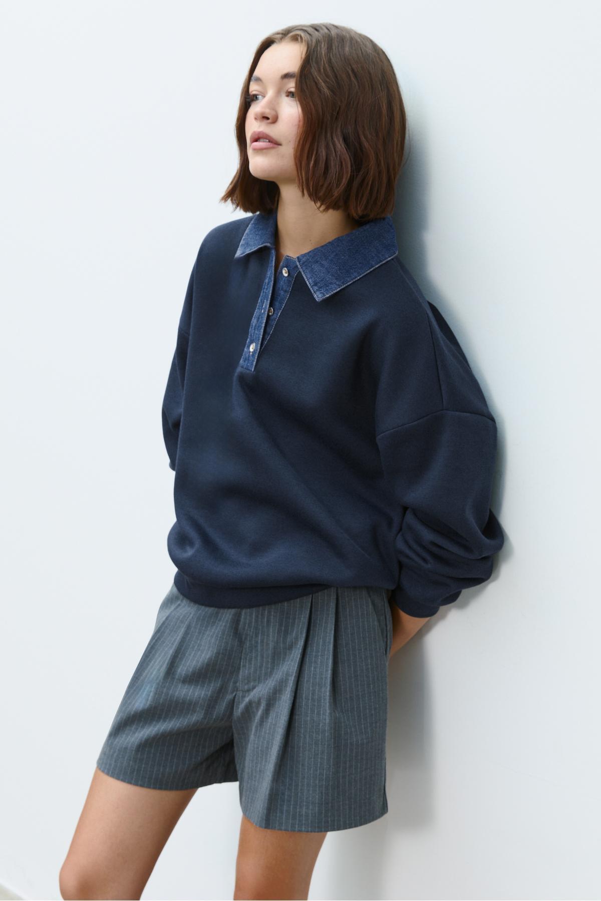 Relax Fit Polo Yaka Çizgili Sweatshirt F9025AX25AU Relax Fit Polo Yaka Çizgili Sweatshirt F9025AX25AU XL