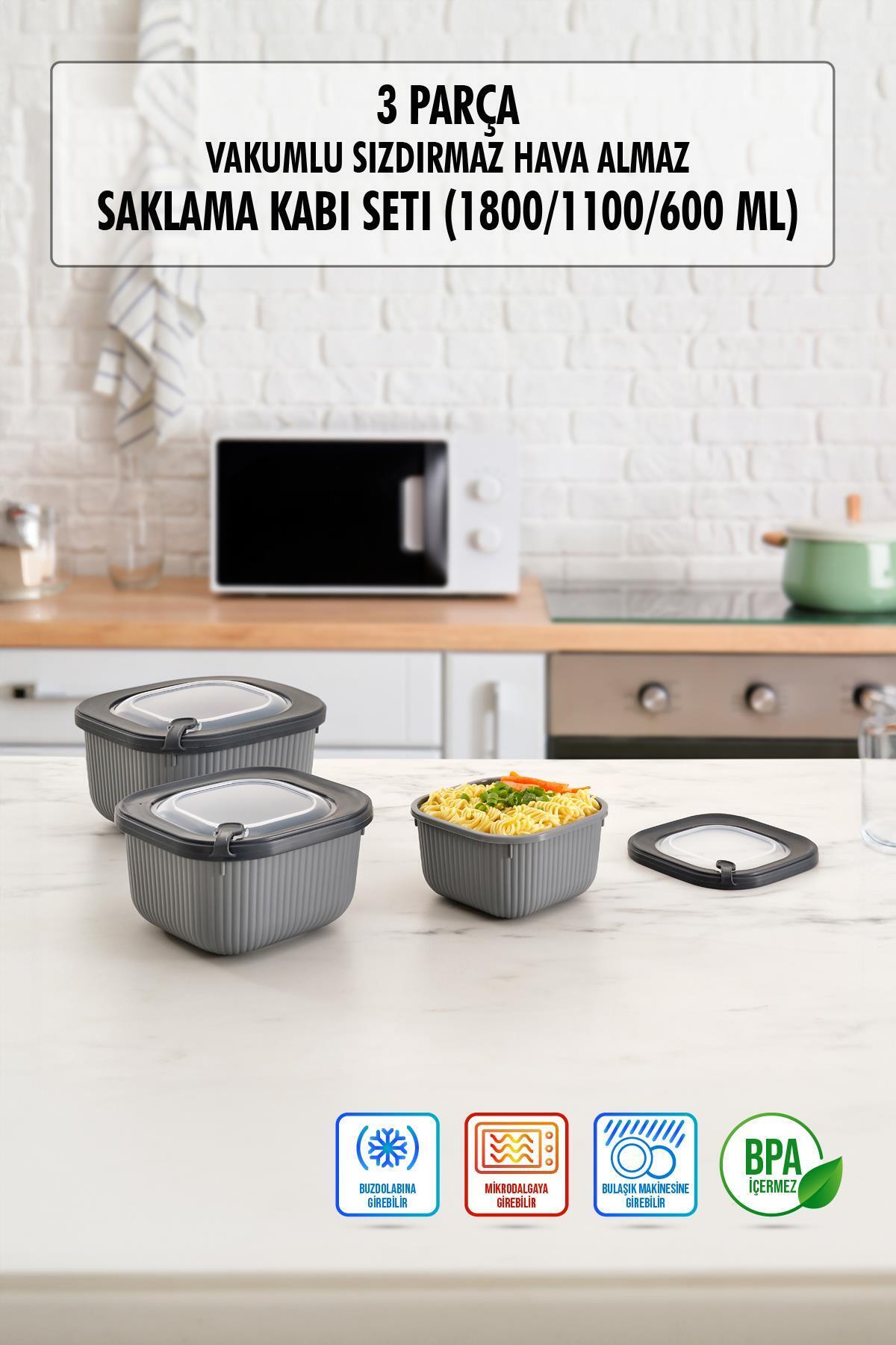 Kare 3 Parça Vakumlu Sızdırmaz Hava Almaz Saklama Kabı Seti Gri (1800/1100/600 Ml) Kare 3 Parça Vakumlu Sızdırmaz Hava Almaz Saklama Kabı Seti Gri (1800/1100/600 Ml) A-30906 تک سایز