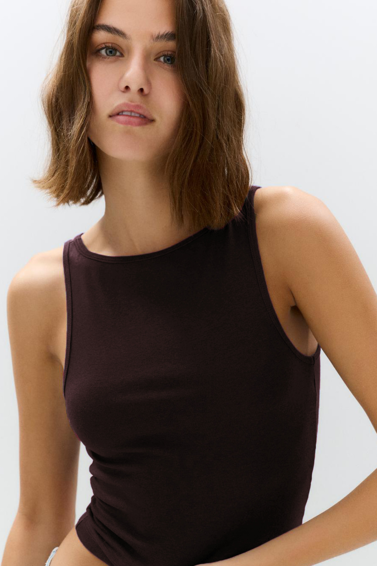 Kadın Kahve %100 Pamuk Basic Kolsuz Top Kadın Kahve %100 Pamuk Basic Kolsuz Top 8725 L