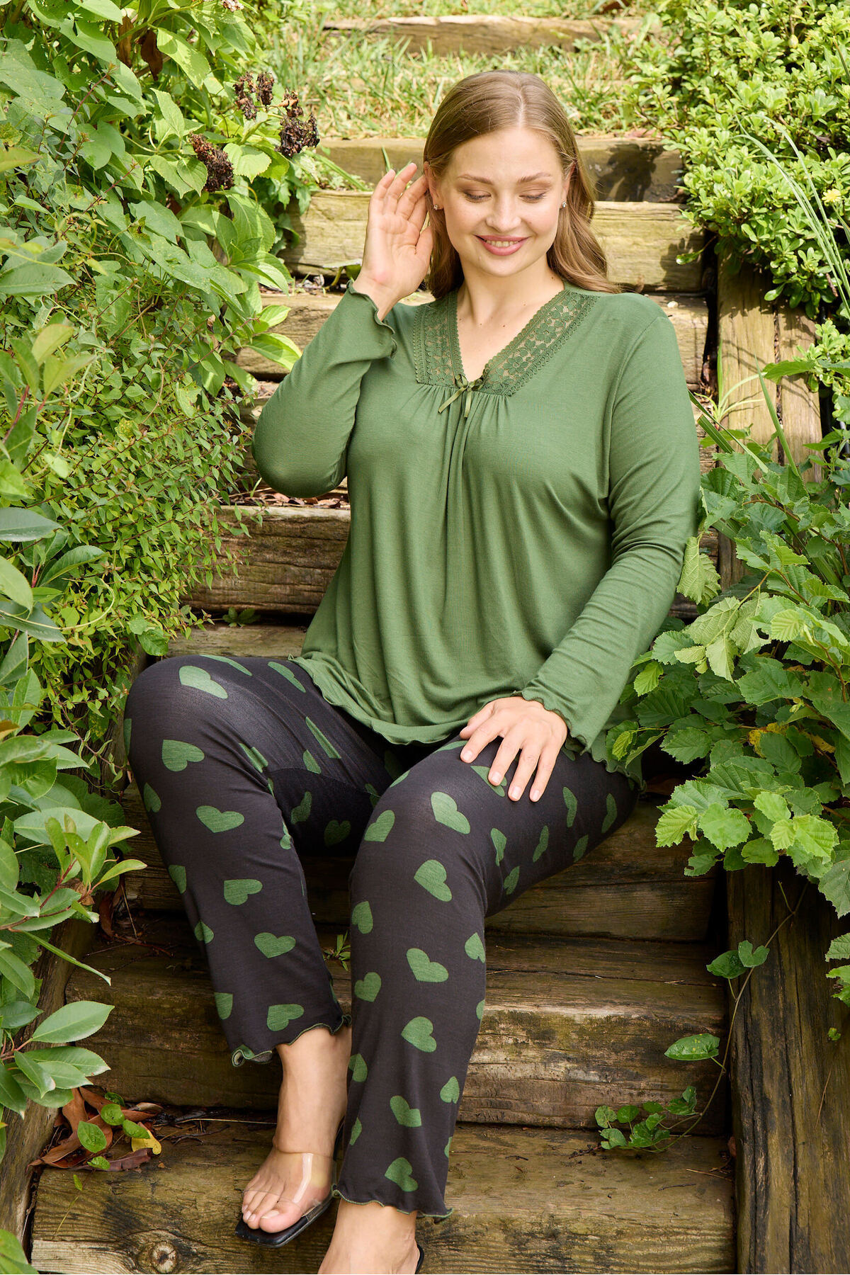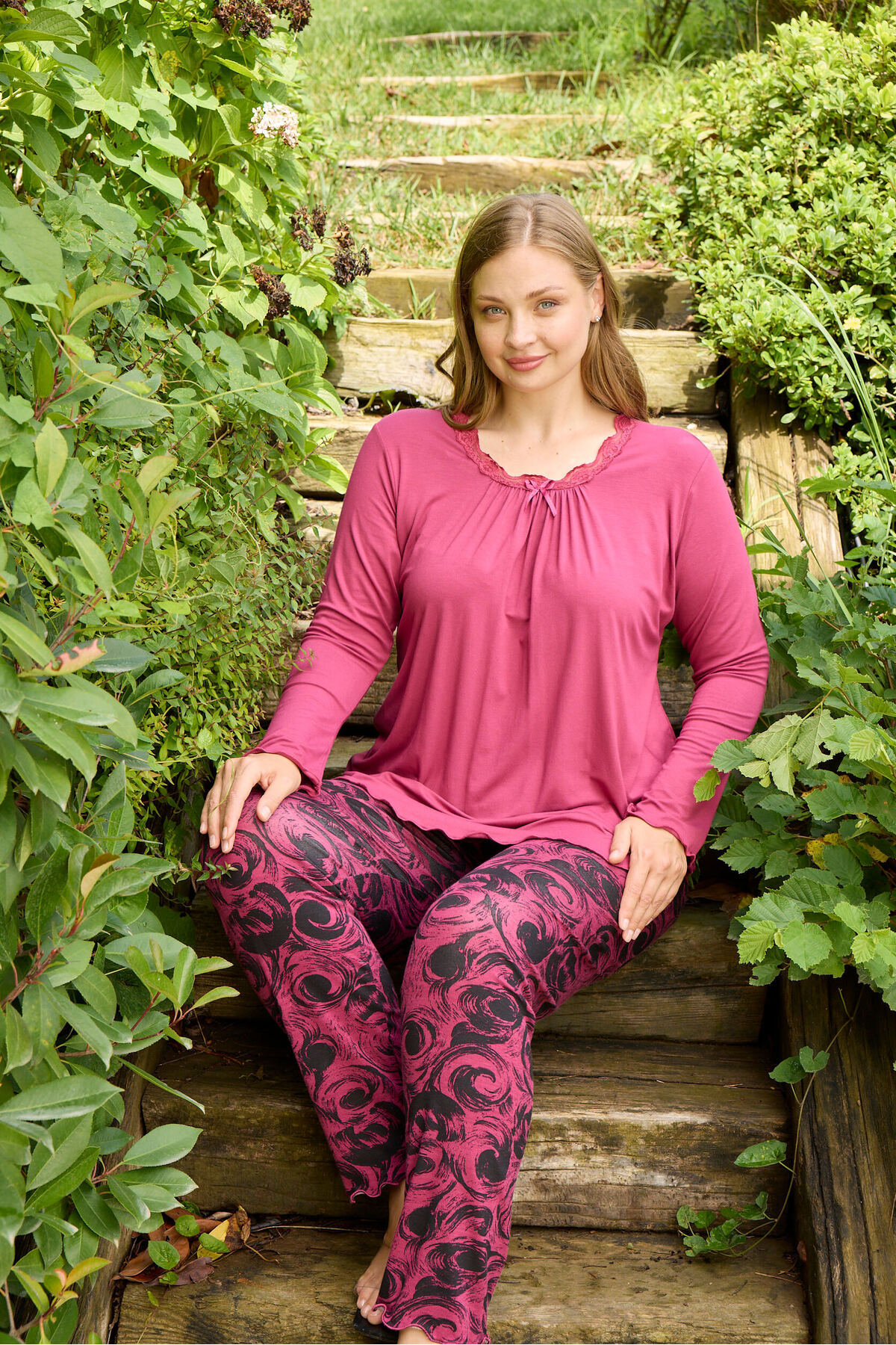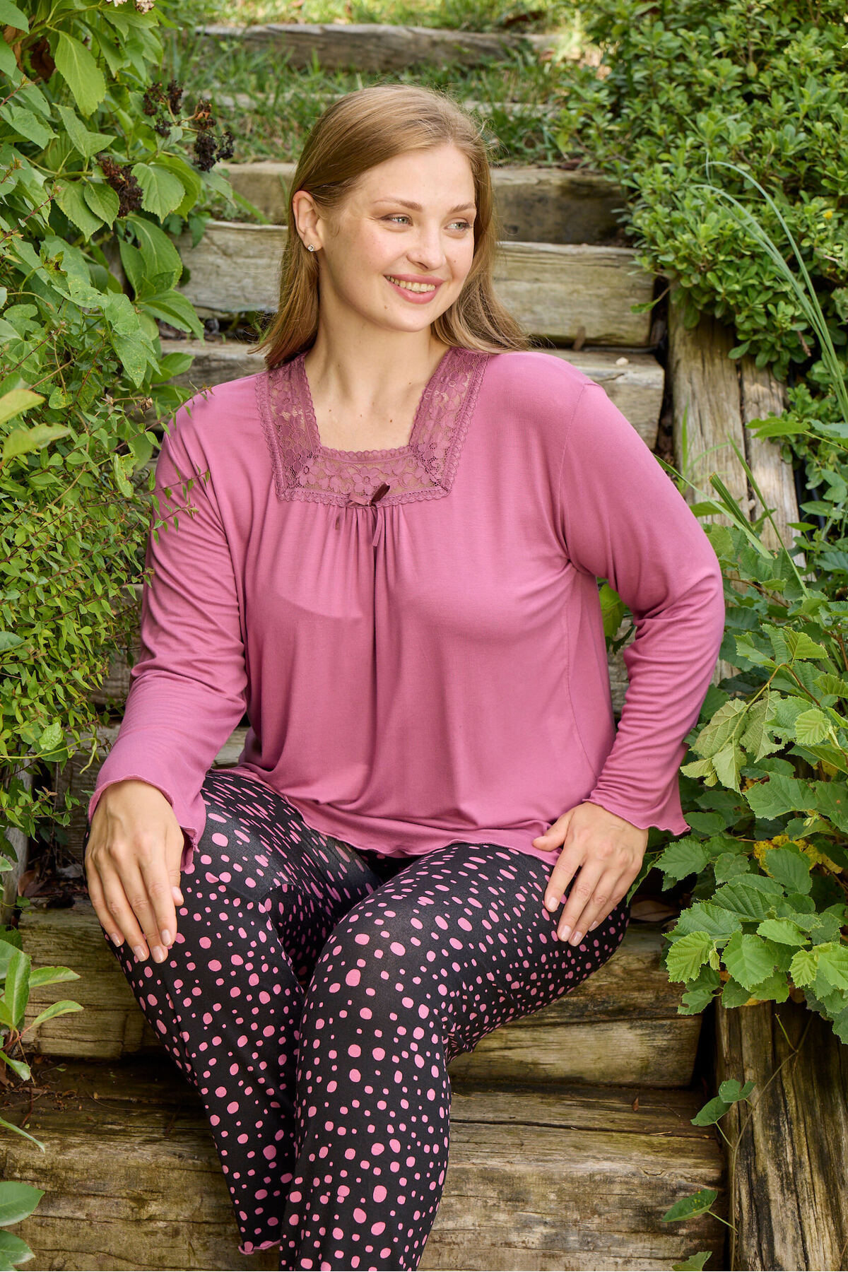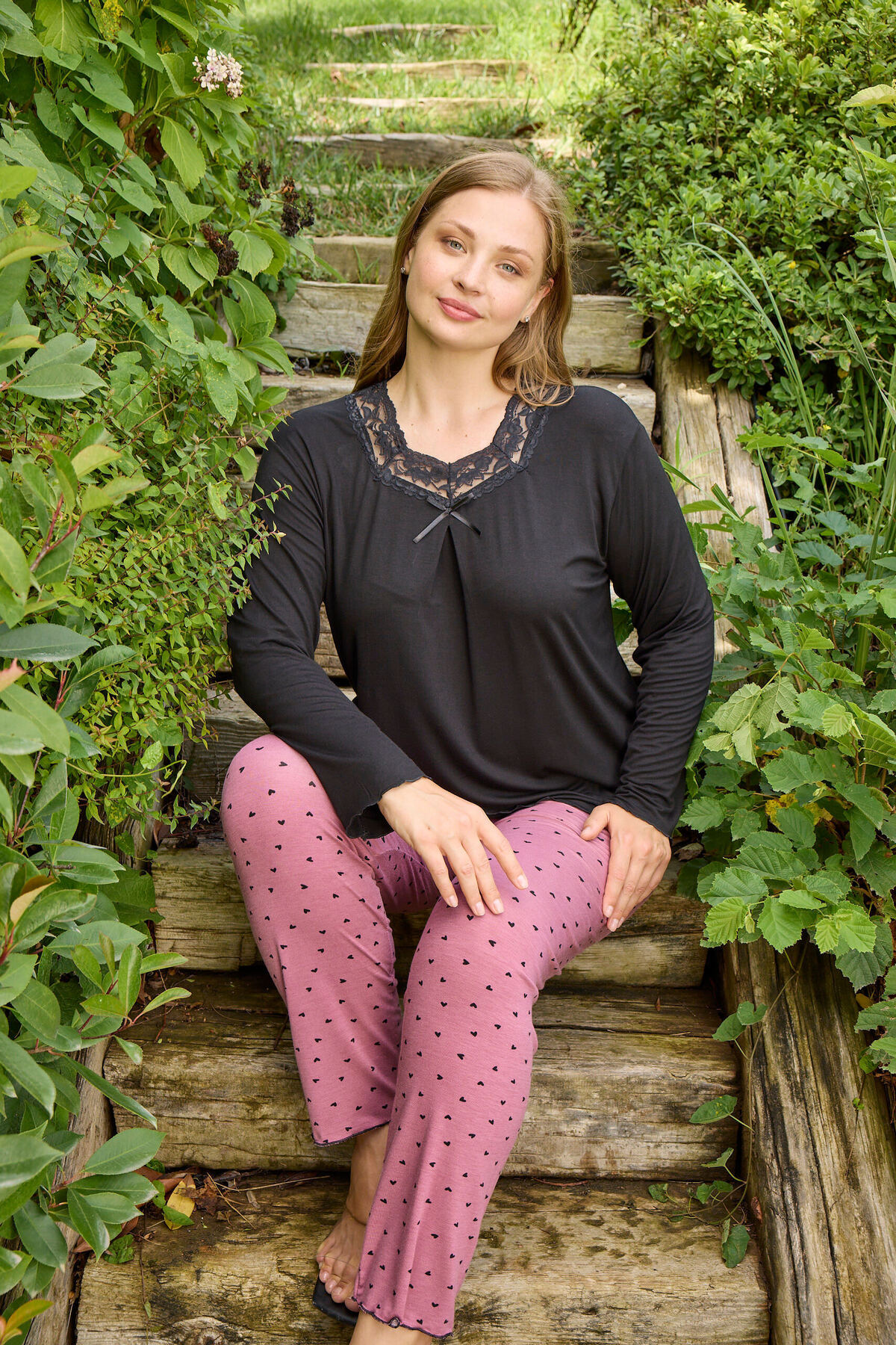 Siyah Ring Viskon Dantel Detaylı Uzun Kol Büyük Beden Pijama Takım Siyah Ring Viskon Dantel Detaylı Uzun Kol Büyük Beden Pijama Takım 2305 5XL