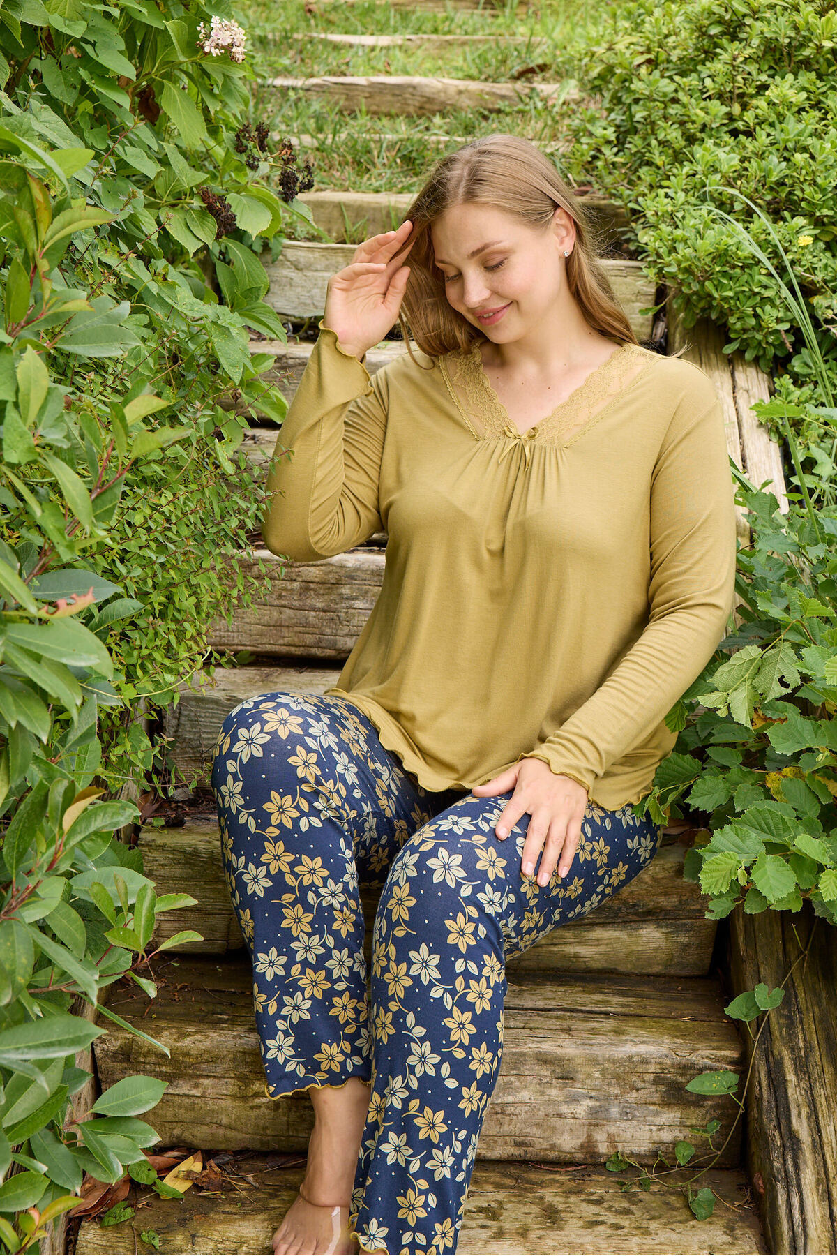 Hardal Ring Viskon Dantel Detaylı Uzun Kol Büyük Beden Pijama Takım Hardal Ring Viskon Dantel Detaylı Uzun Kol Büyük Beden Pijama Takım 2305 5XL