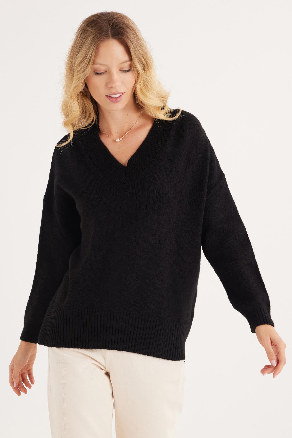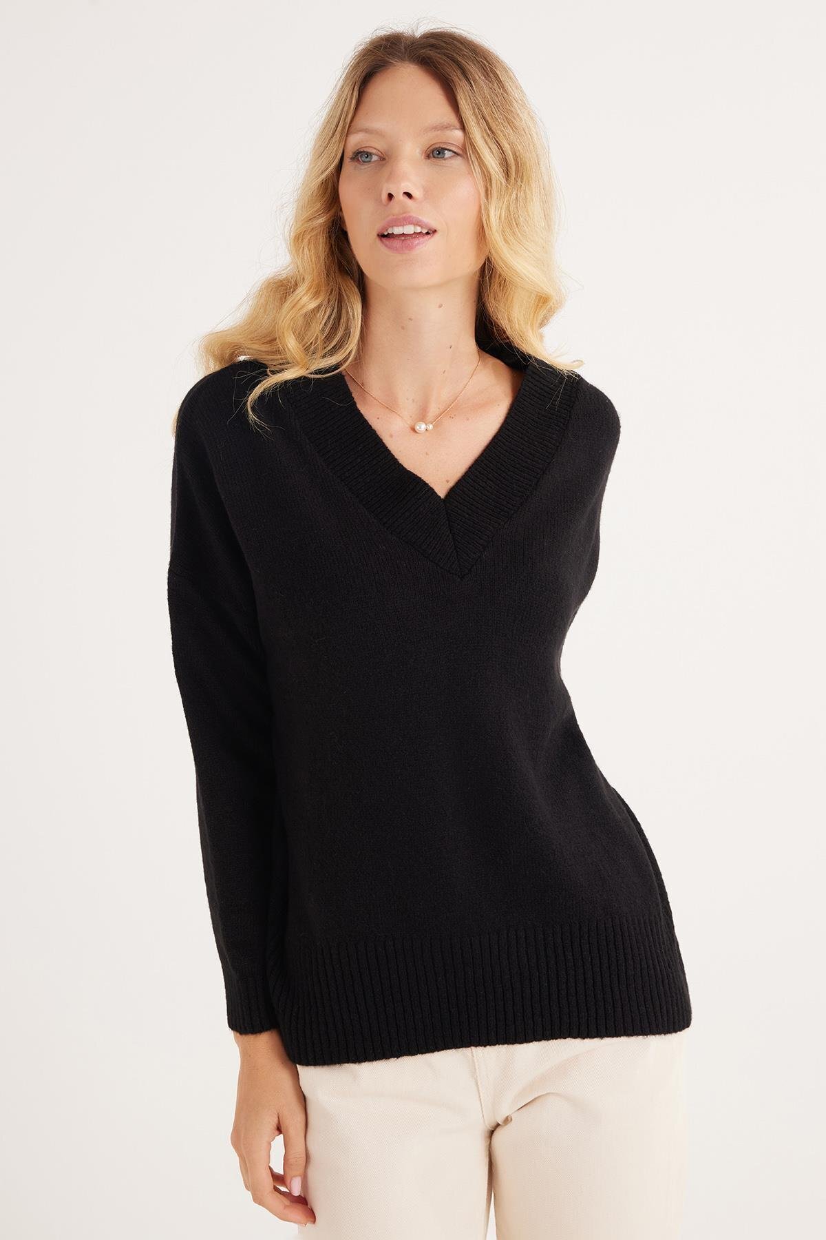 Kadın Slim Fit Dar Kesim V Yaka Siyah Kazak Kadın Slim Fit Dar Kesim V Yaka Siyah Kazak BYKZ2507 Standart