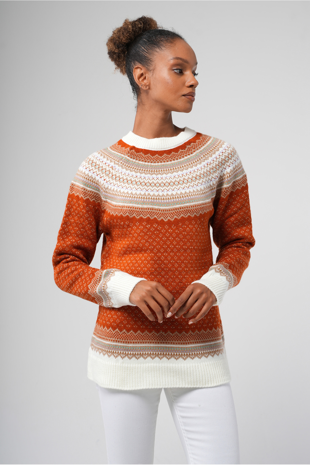 Kadın Desenli Triko Kış Kazağı Kadın Desenli Triko Kış Kazağı HOP1115-1 Standart
