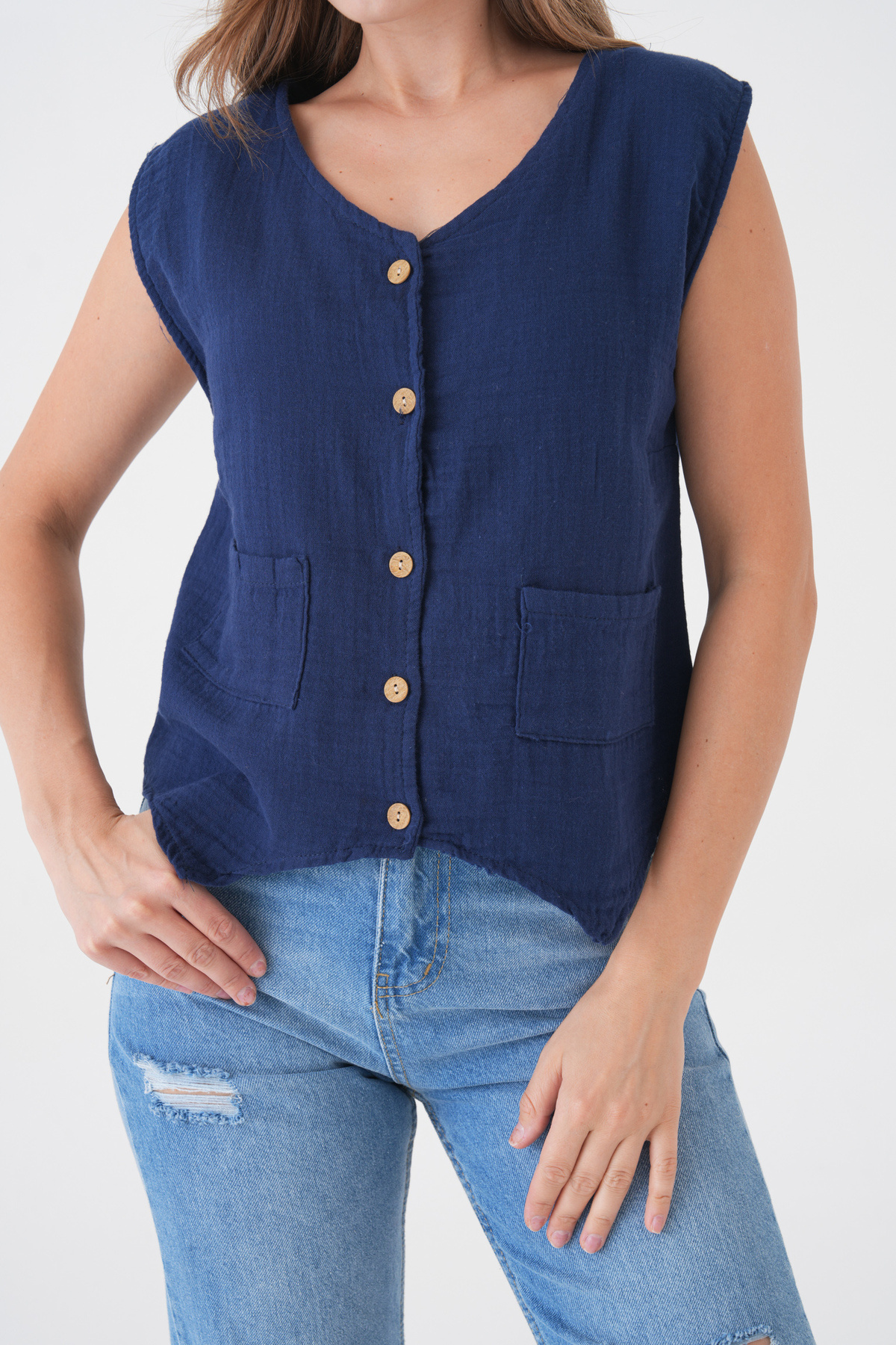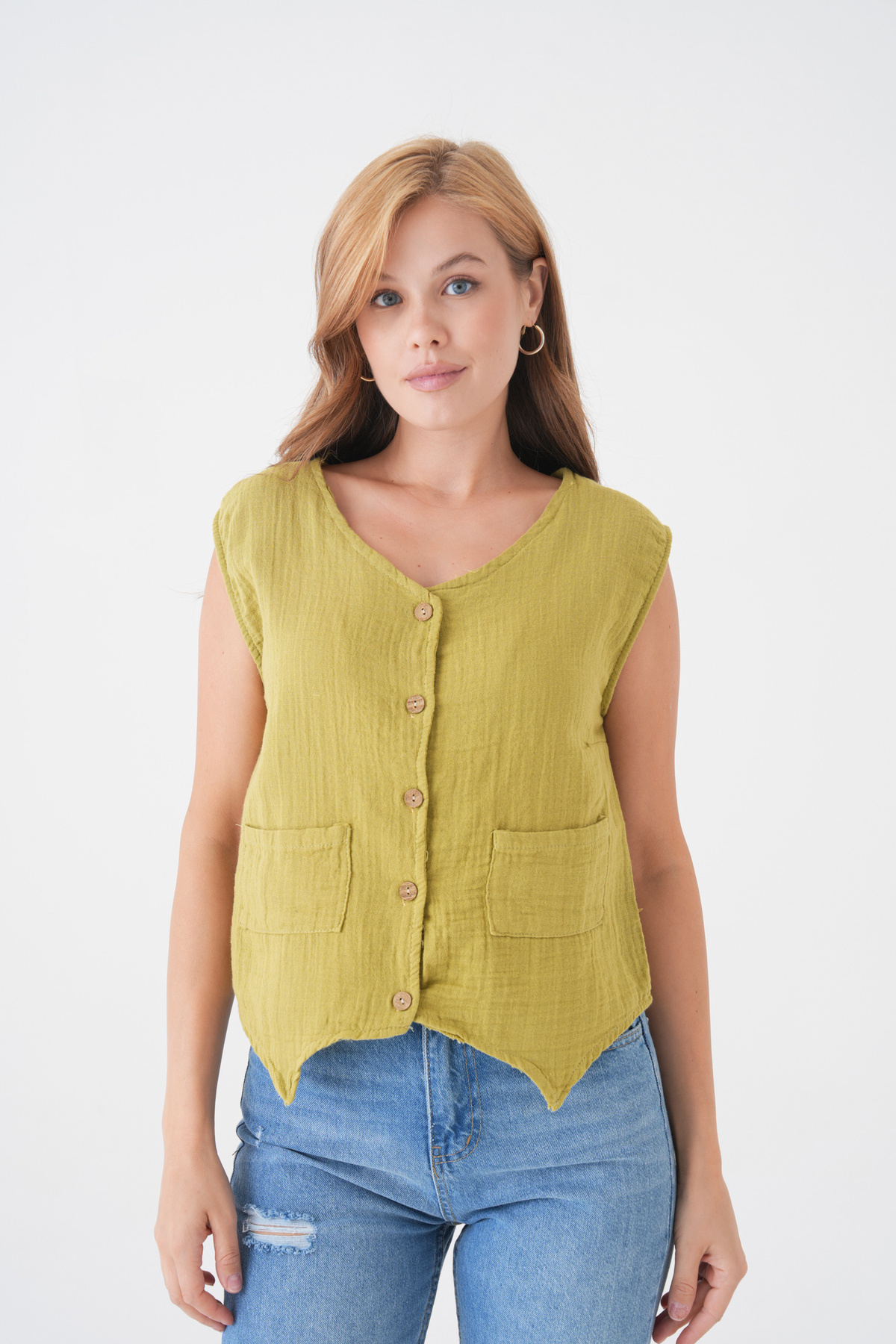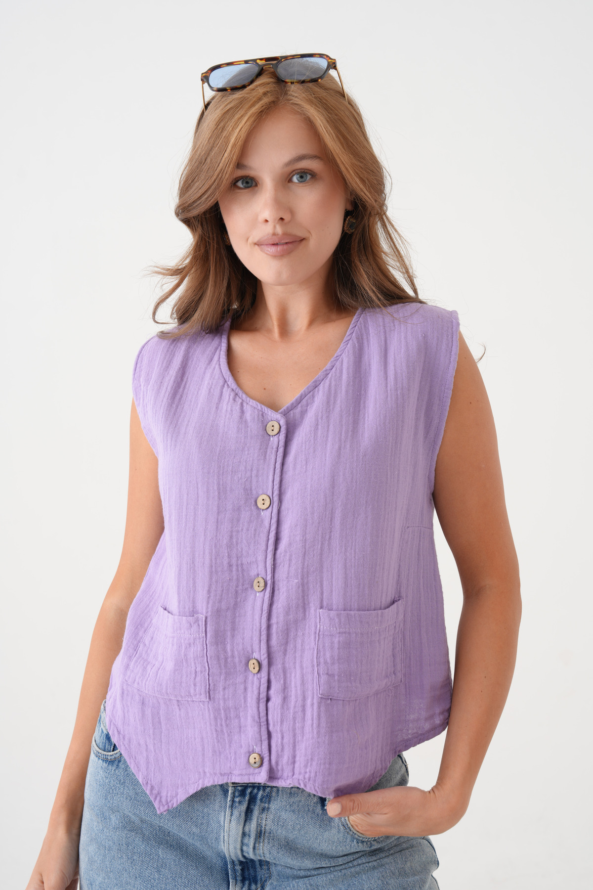 Müslin Cepken Yelek Bluz - %100 Pamuk Önden Düğmeli Kadın Üst Giyim- SM034 Müslin Cepken Yelek Bluz - %100 Pamuk Önden Düğmeli Kadın Üst Giyim- SM034 SMYELEK001 XL