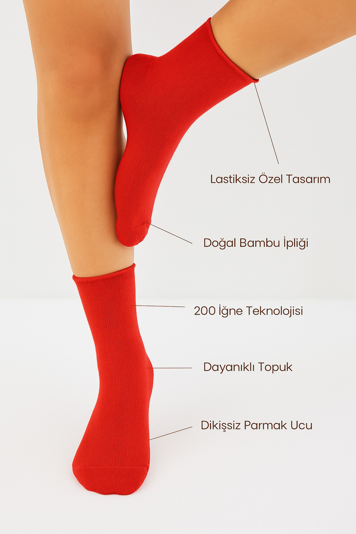 Bambu Kadın Kırmızı Lastiksiz Soket Dikişsiz Premium Çorap 3'lü Paket Sıkmayan Çorap / İz Bırakmaz Bambu Kadın Kırmızı Lastiksiz Soket Dikişsiz Premium Çorap 3'lü Paket Sıkmayan Çorap / İz Bırakmaz 3LÜLASTİKSİZÇORAP 36 - 40