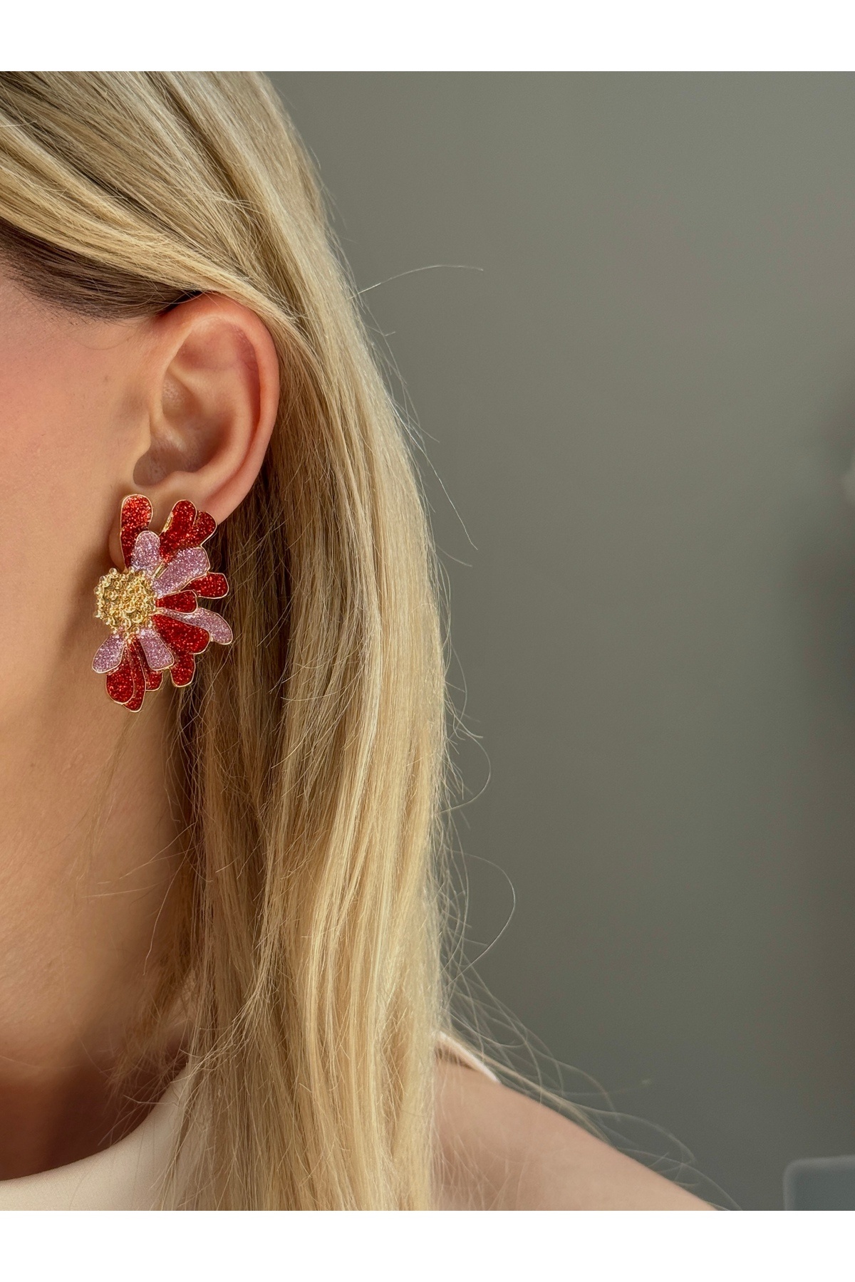 Çelik Çiçek Desenli Renkli Yaz Küpesi Çelik Çiçek Desenli Renkli Yaz Küpesi TYYouescck تک سایز