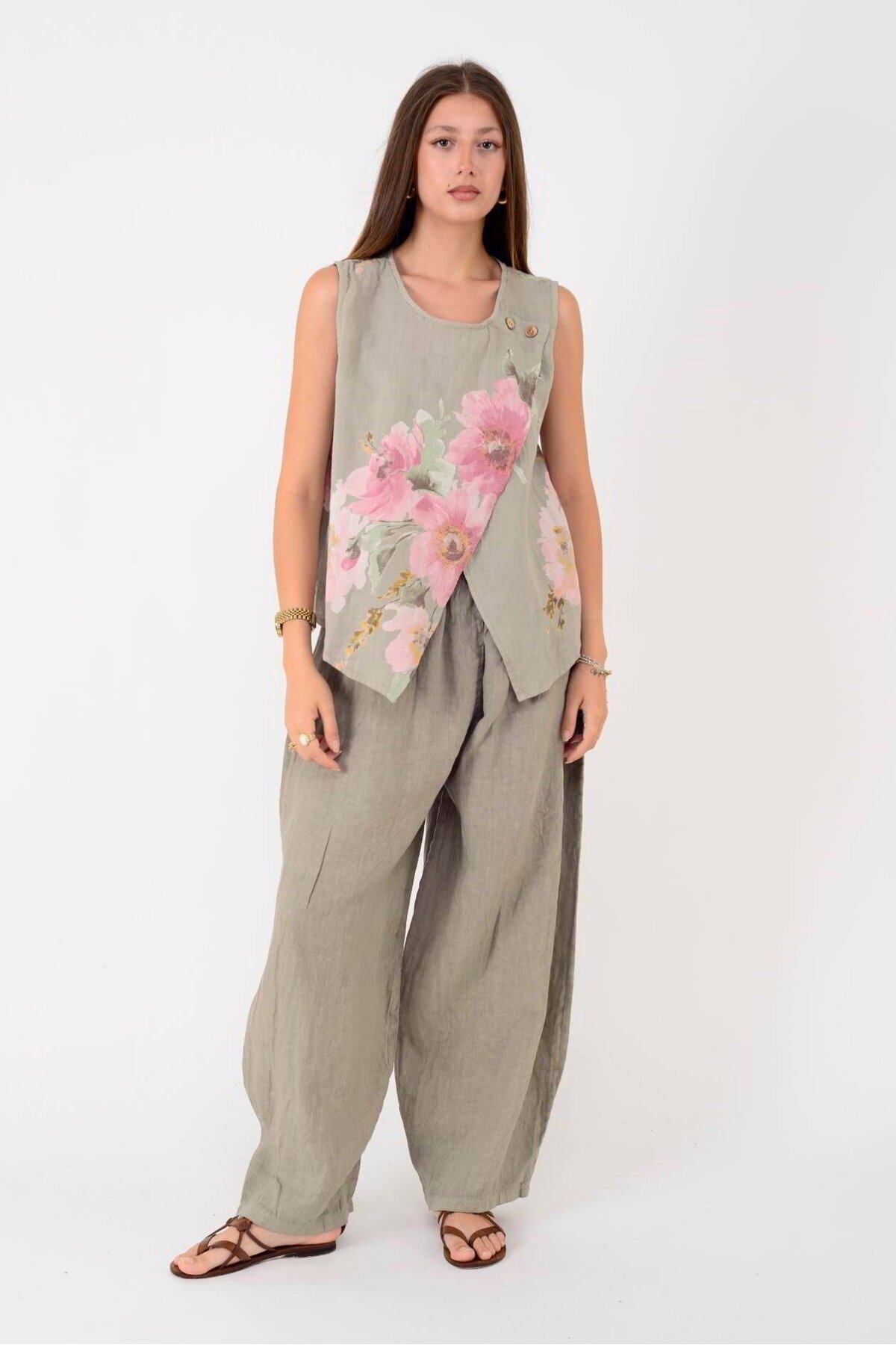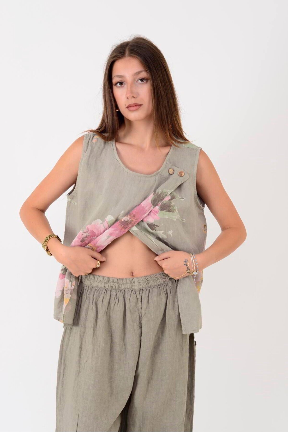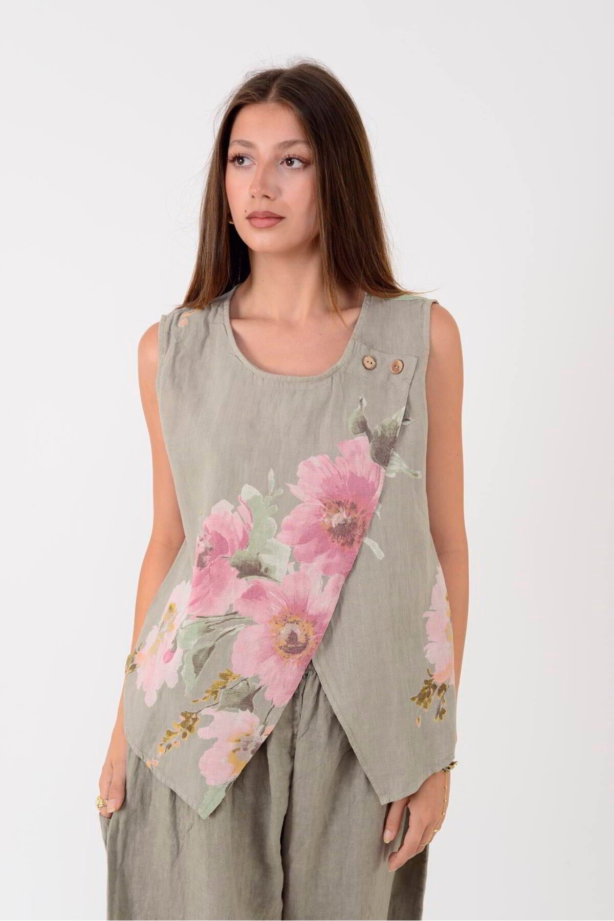 149281 BATİK ÇİÇEK DESEN ASİMETRİK KOLSUZ KETEN BLUZ 149281 BATİK ÇİÇEK DESEN ASİMETRİK KOLSUZ KETEN BLUZ 25Y.T.BLZ.00322-31 0