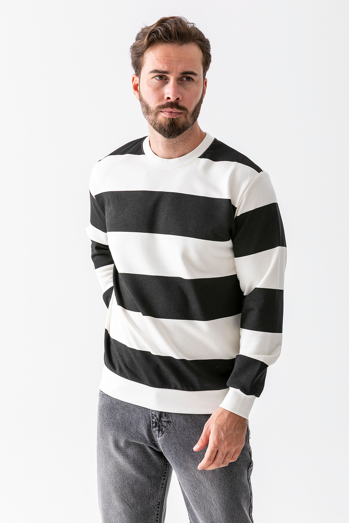 Erkek Bisiklet Yaka 3İp Çizgili Sweatshirt Siyah - 25K 5790-1 Erkek Bisiklet Yaka 3İp Çizgili Sweatshirt Siyah - 25K 5790-1 422616703 2XL