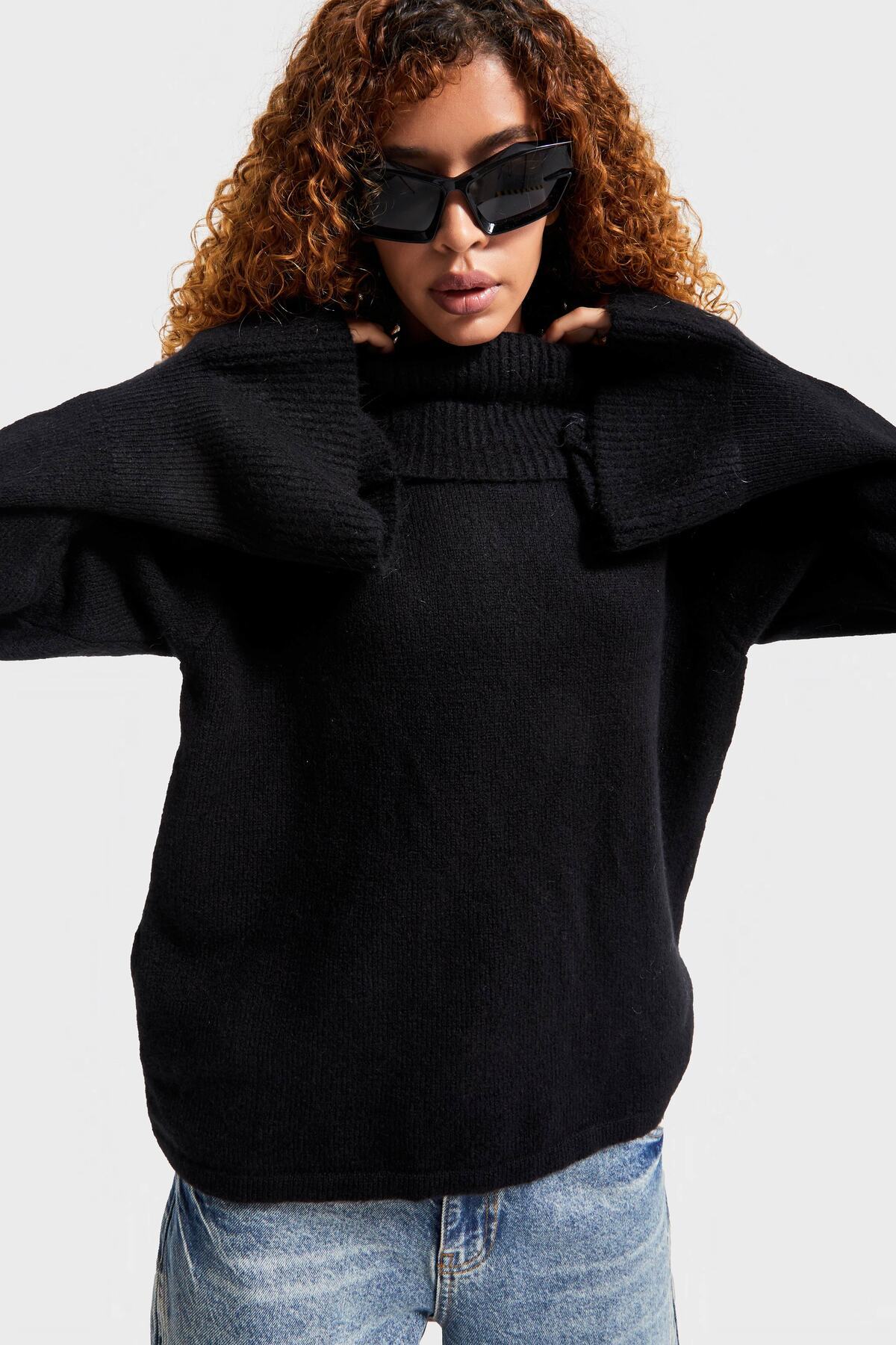 Kadın Siyah Renk W5-1 Balıkçı Yaka Oversize Yumuşak Örgü Kazak Kadın Siyah Renk W5-1 Balıkçı Yaka Oversize Yumuşak Örgü Kazak ITSBASIC 4282 XS-S