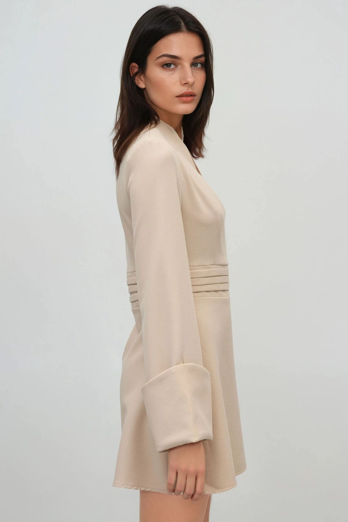 Şık V Yaka Uzun Kollu Mini Elbise Şık V Yaka Uzun Kollu Mini Elbise MB4WI572 XL