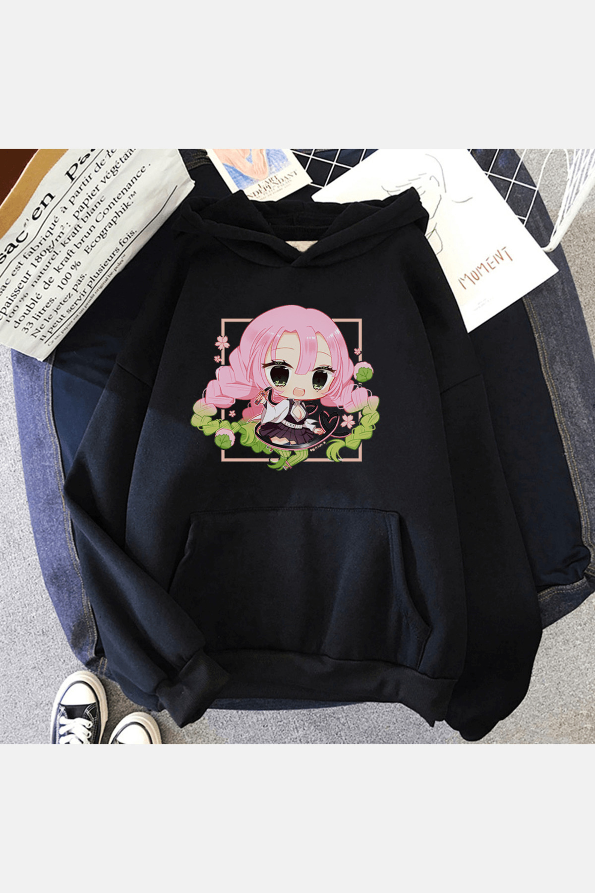 Siyah Demon Slayer Mitsuri Kanroji Kapşonlu Siyah Demon Slayer Mitsuri Kanroji Kapşonlu pop5651 XL