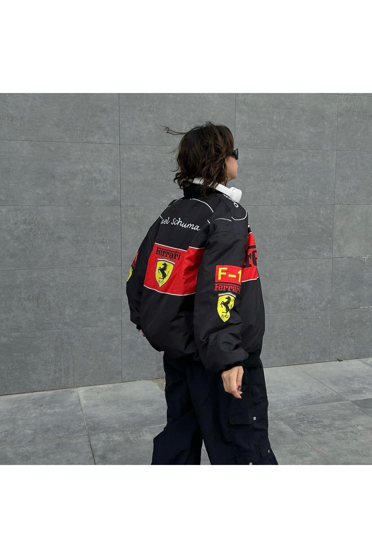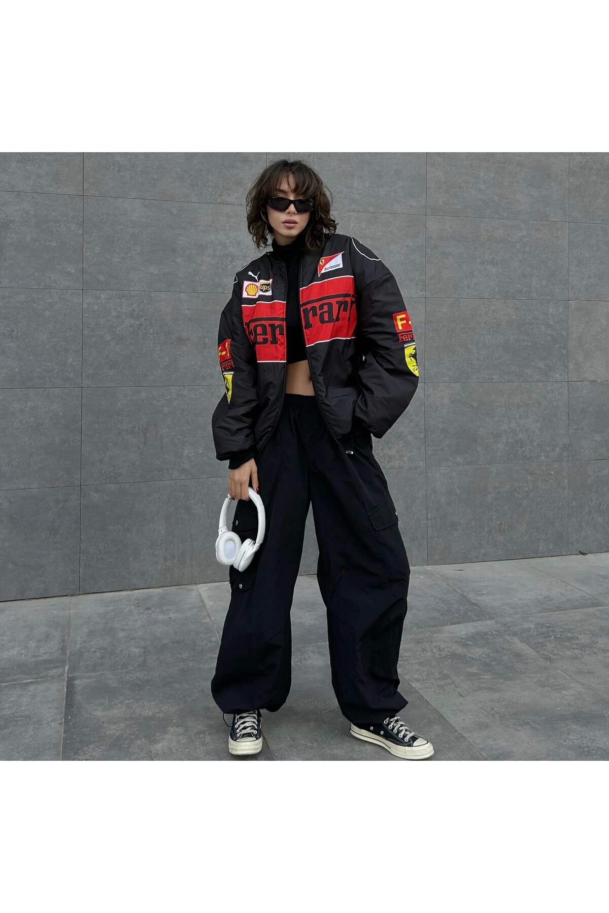 Siyah Kırmızı Ferrari Desenli Racing Unisex Oversize Bomber Ceket Siyah Kırmızı Ferrari Desenli Racing Unisex Oversize Bomber Ceket gc1c13f XL