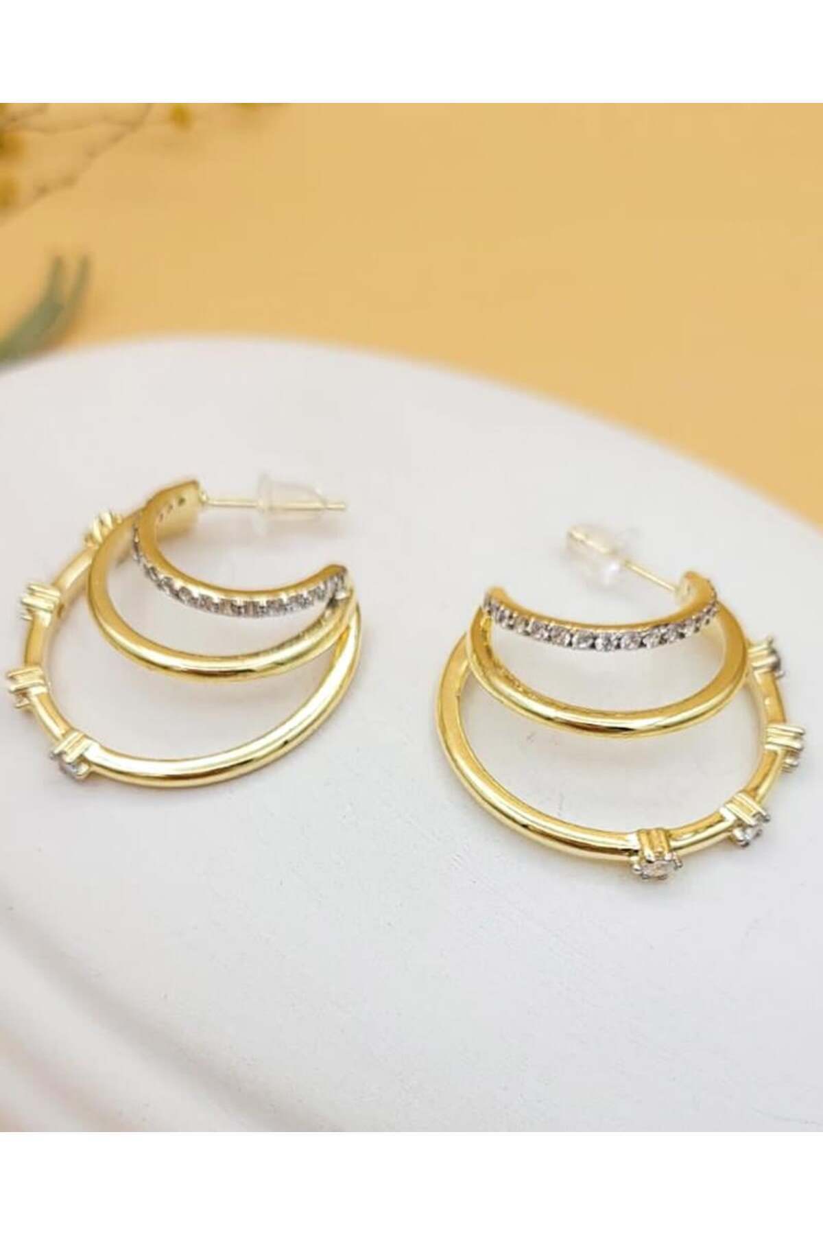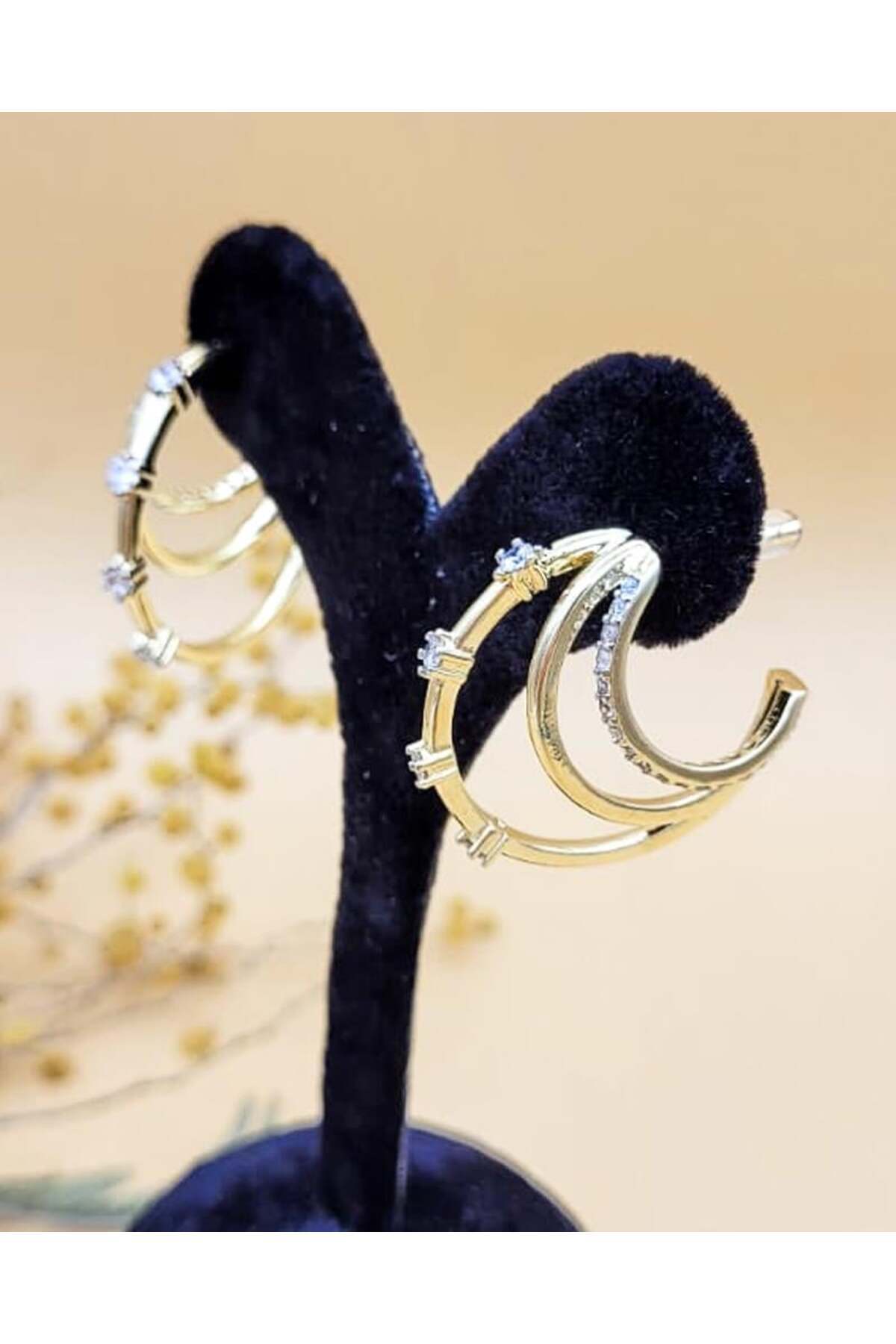 Zirkon Taşlı Çoklu Görünüm Yarım Halka Gold Küpe Zirkon Taşlı Çoklu Görünüm Yarım Halka Gold Küpe NV2244 تک سایز