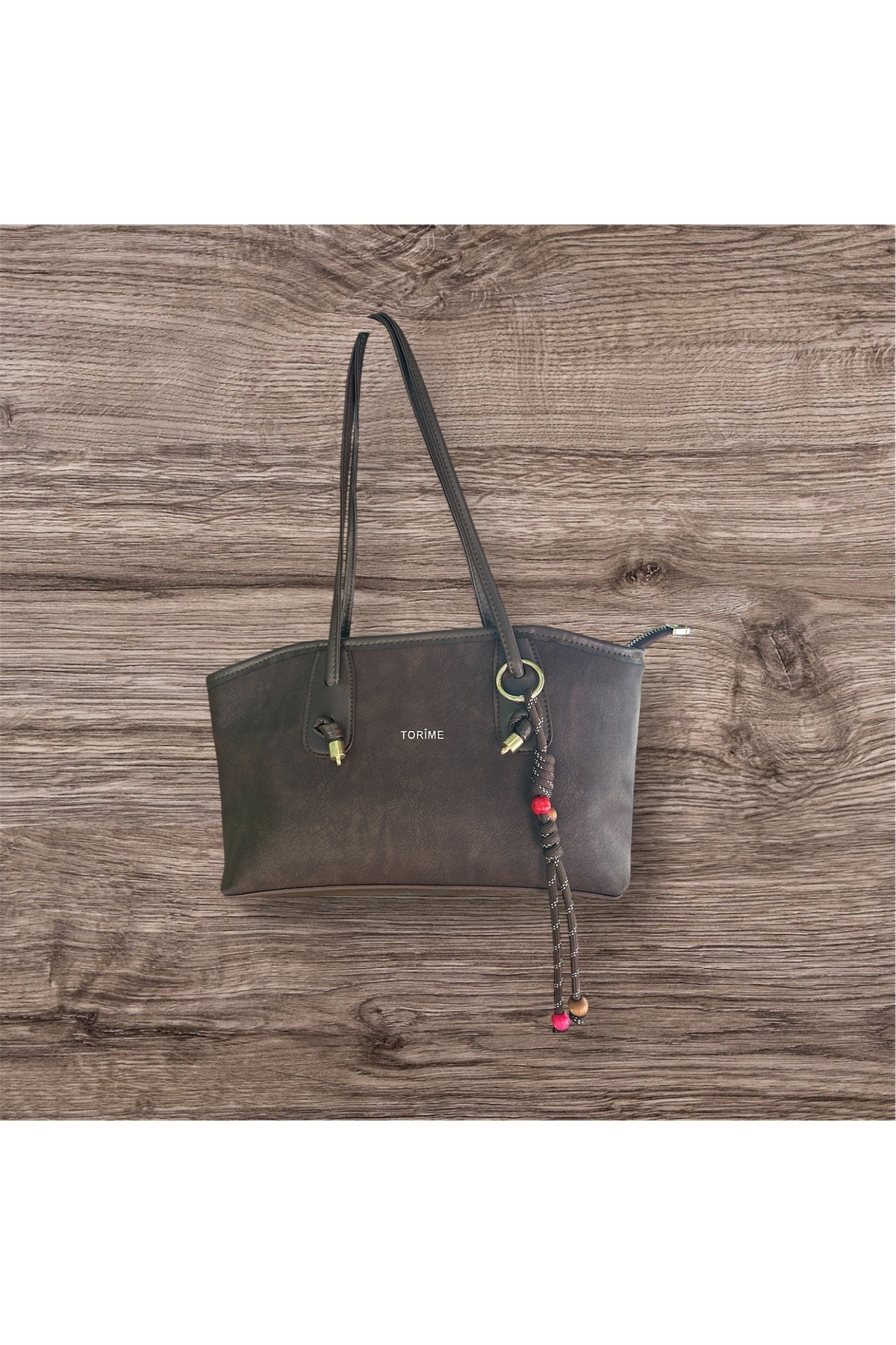 Vegan deri orta boy acı kahve charm hediyeli kadın omuz çantası Vegan deri orta boy acı kahve charm hediyeli kadın omuz çantası TM.T. Standart