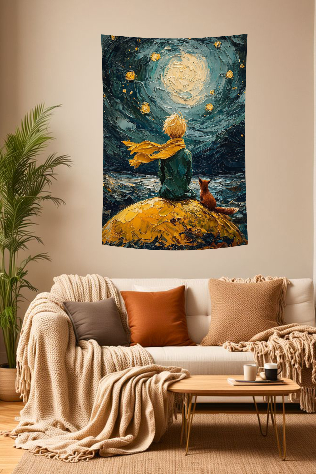 Küçük Prens Temalı Yıldızlı Gökyüzü Duvar Örtüsü Küçük Prens Temalı Yıldızlı Gökyüzü Duvar Örtüsü bu528 70 x 100