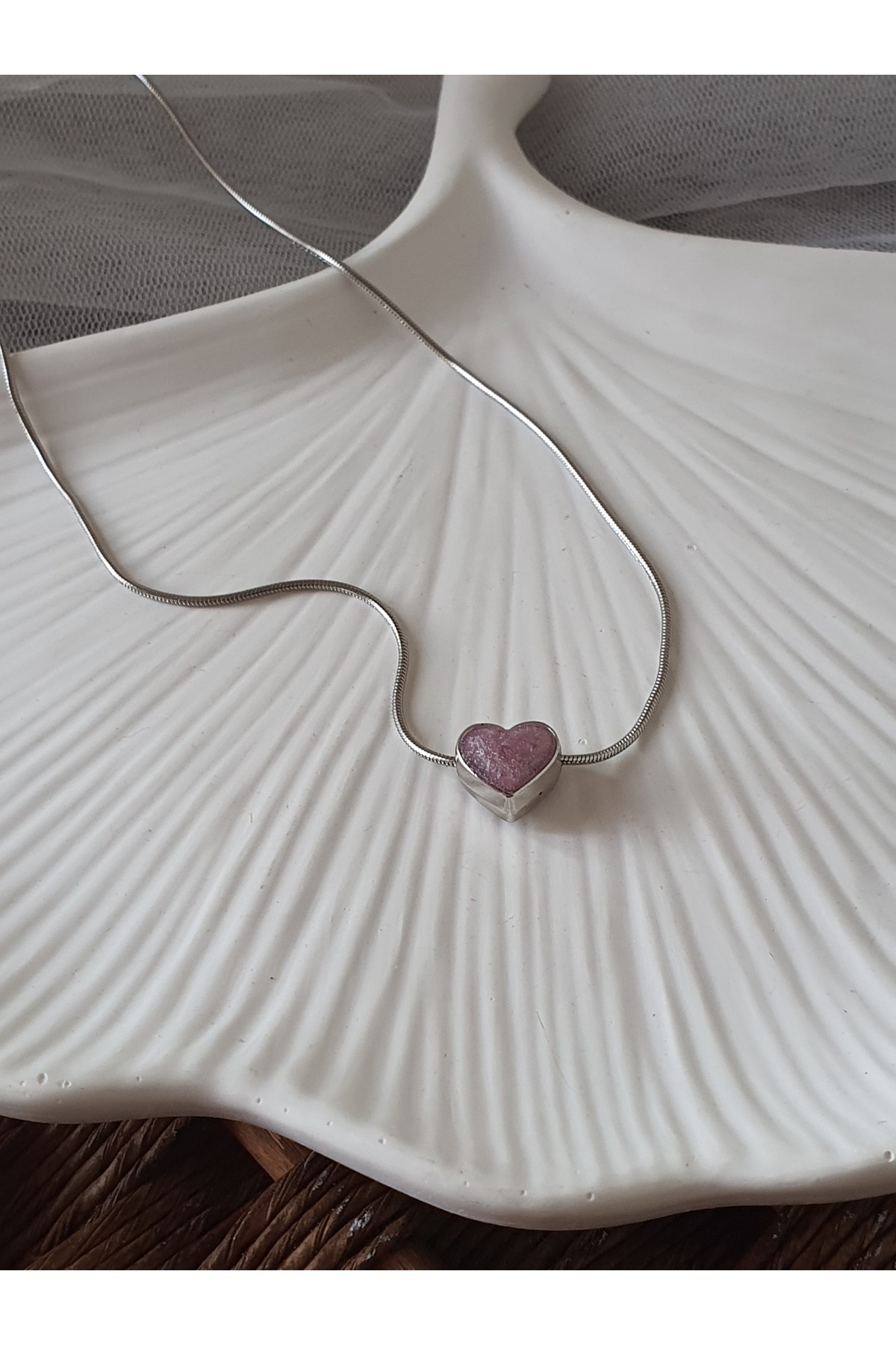 Çelik kalpli mineli kolye genç gümüş renk kolye Çelik kalpli mineli kolye genç gümüş renk kolye 5nat 0