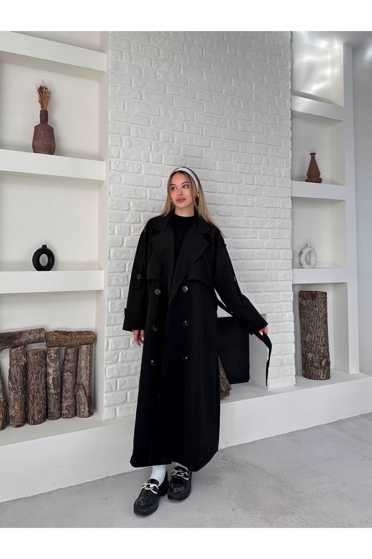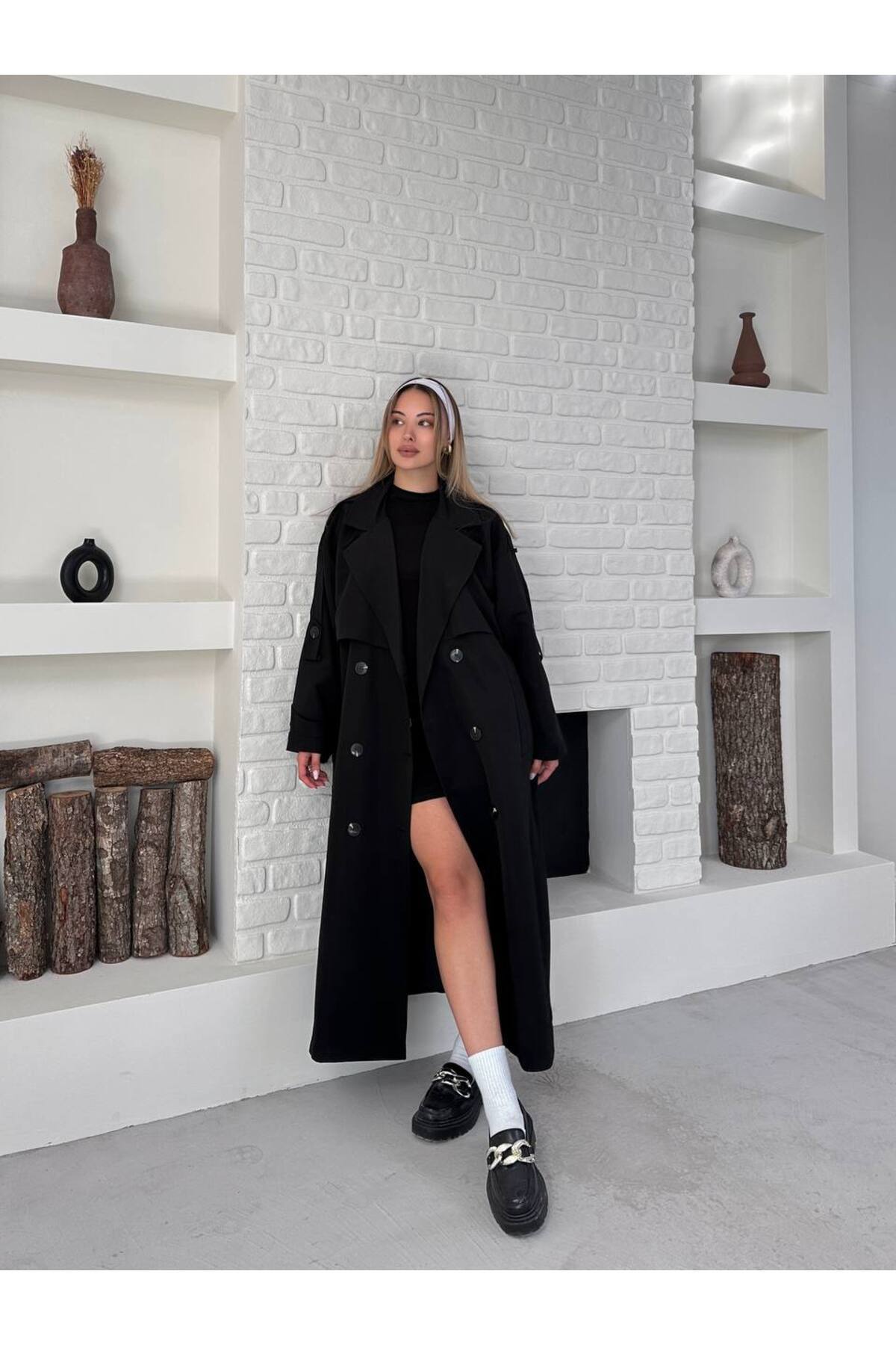 Kadın Siyah Trençkot Uzun Kuşaklı Yeni Sezon Şık Ve Modern Dış Giyim Kadın Siyah Trençkot Uzun Kuşaklı Yeni Sezon Şık Ve Modern Dış Giyim 26352 L