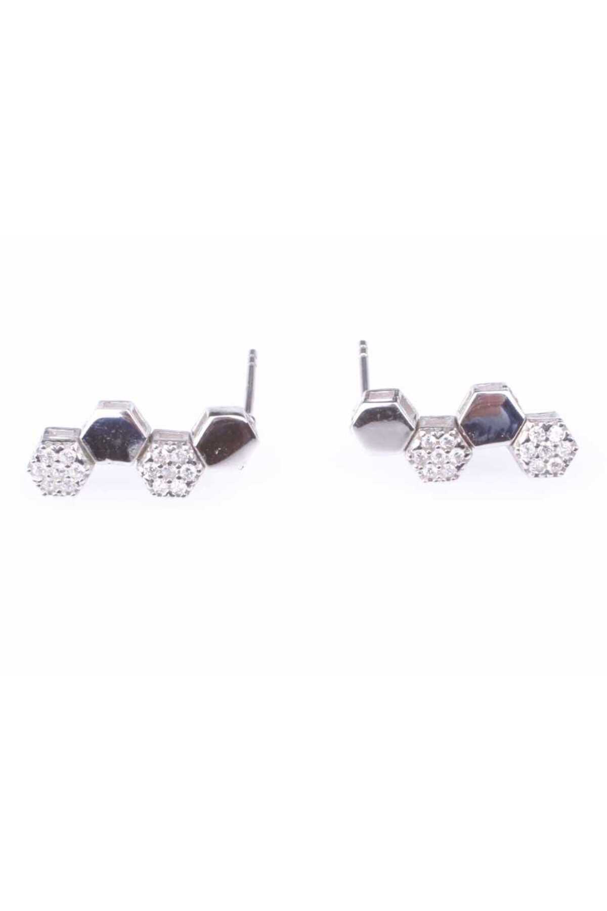 925 Ayar Gümüş Petek Desenli Pırlanta Stili Küpe 925 Ayar Gümüş Petek Desenli Pırlanta Stili Küpe WGKP107 تک سایز