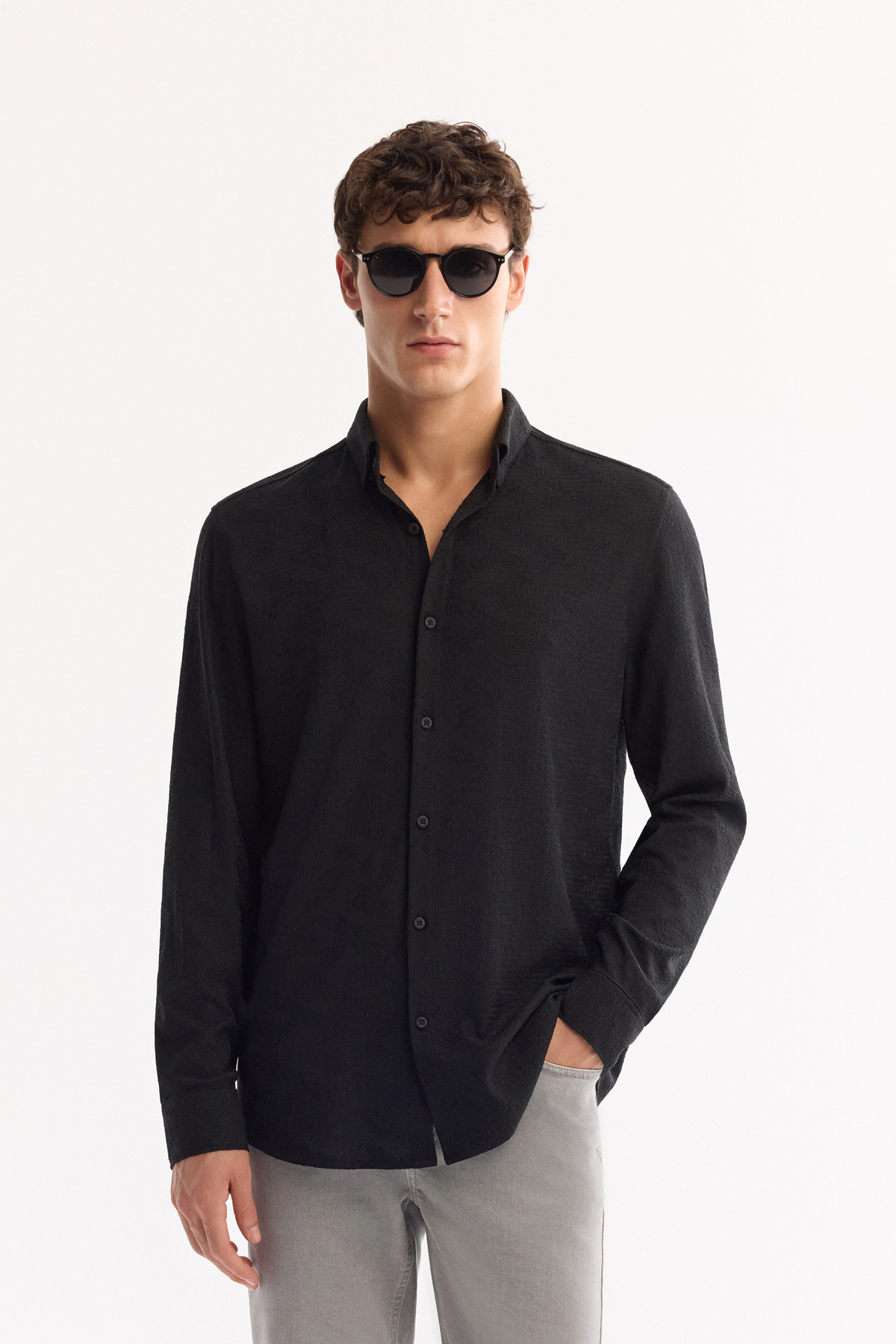Erkek Siyah Klasik Yaka Hızlı Kuruyan Non-Iron Slim Fit Gömlek A52Y2122 Erkek Siyah Klasik Yaka Hızlı Kuruyan Non-Iron Slim Fit Gömlek A52Y2122 3XL