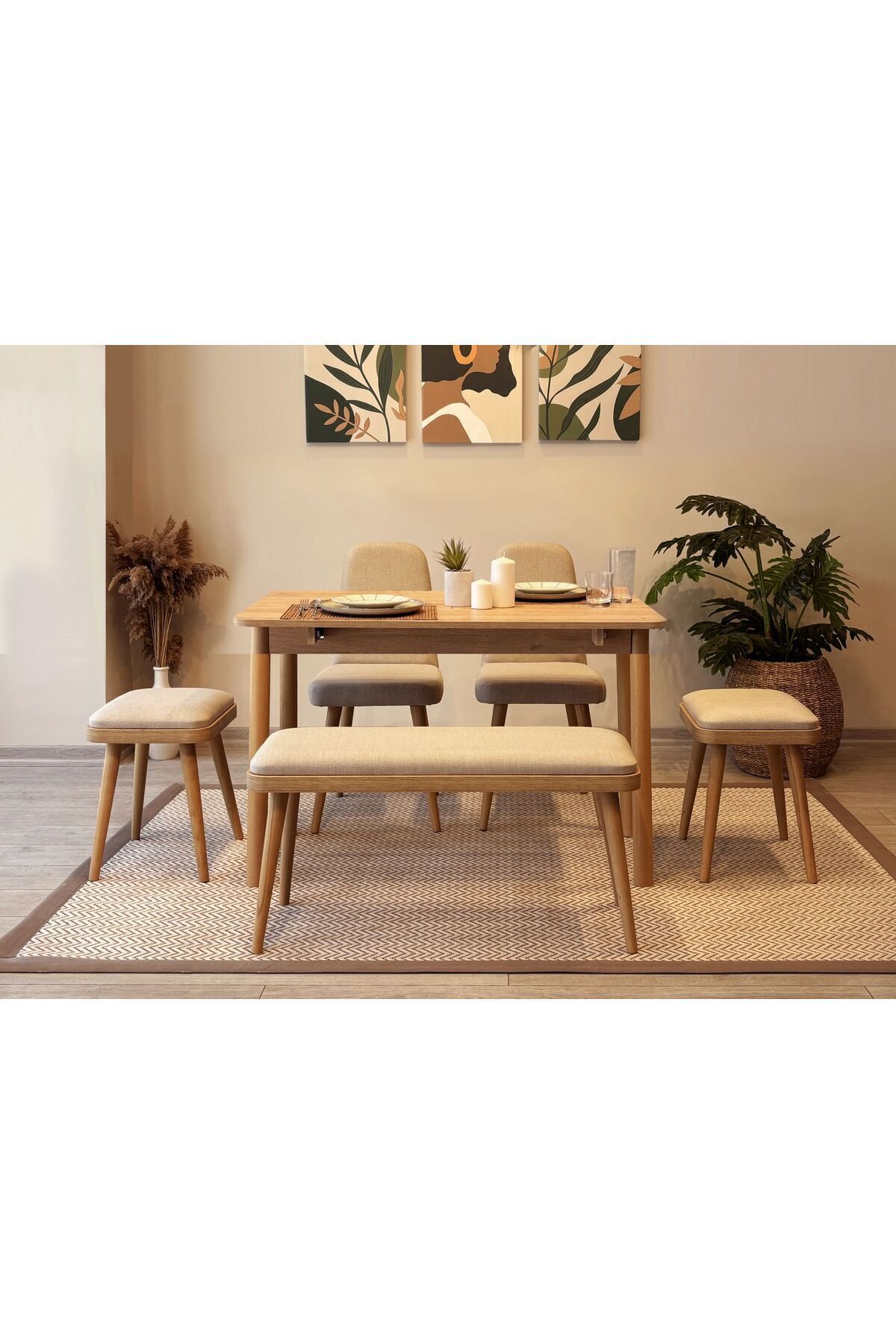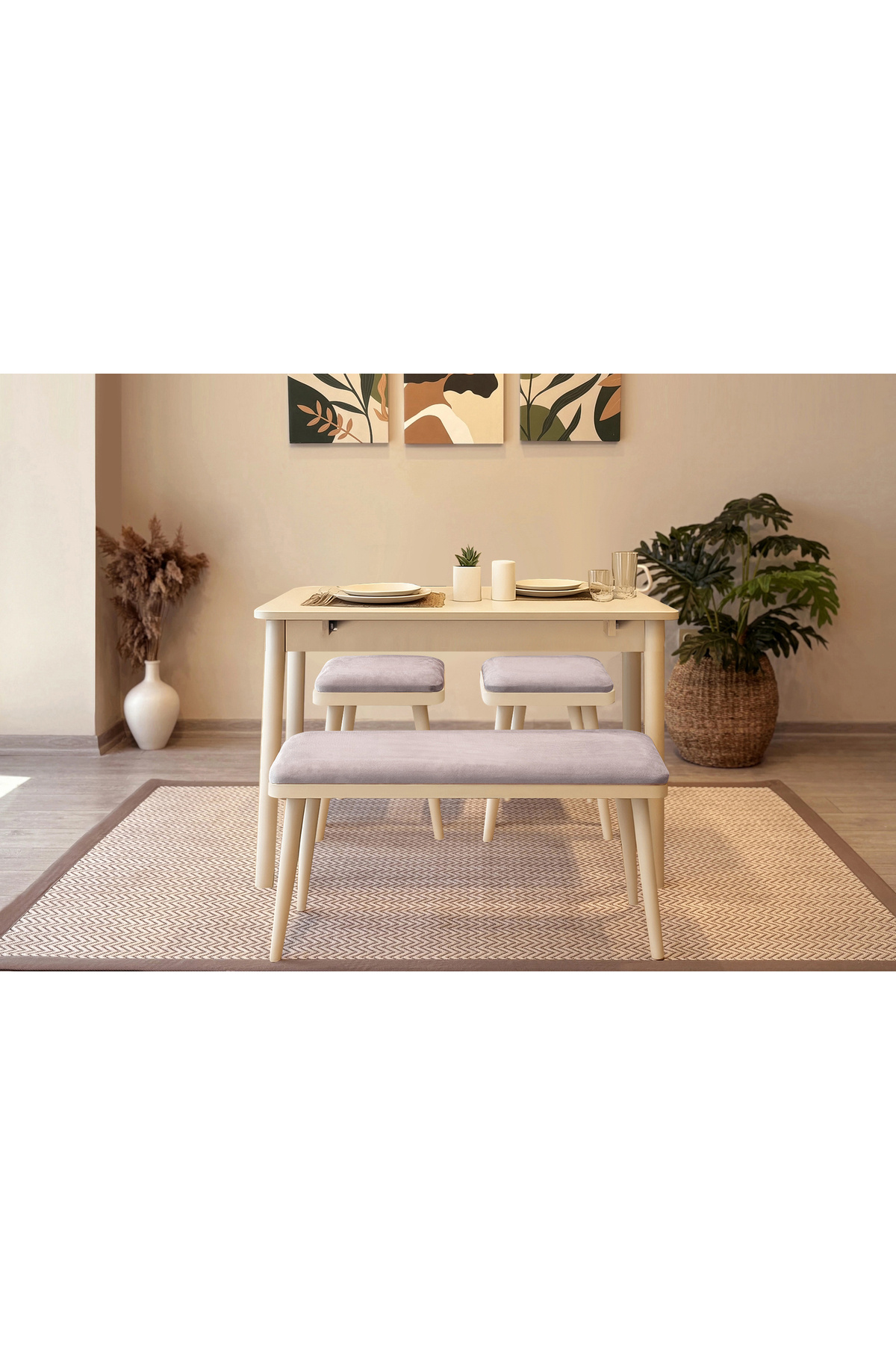 MİORA MİNİ AÇILIR MUTFAK MASA TAKIMI, KREM KREM ( 1 Masa + 2 Bench + 2 Tabure ) MİORA MİNİ AÇILIR MUTFAK MASA TAKIMI, KREM KREM ( 1 Masa + 2 Bench + 2 Tabure ) RB-UV-MT-TK6 تک سایز
