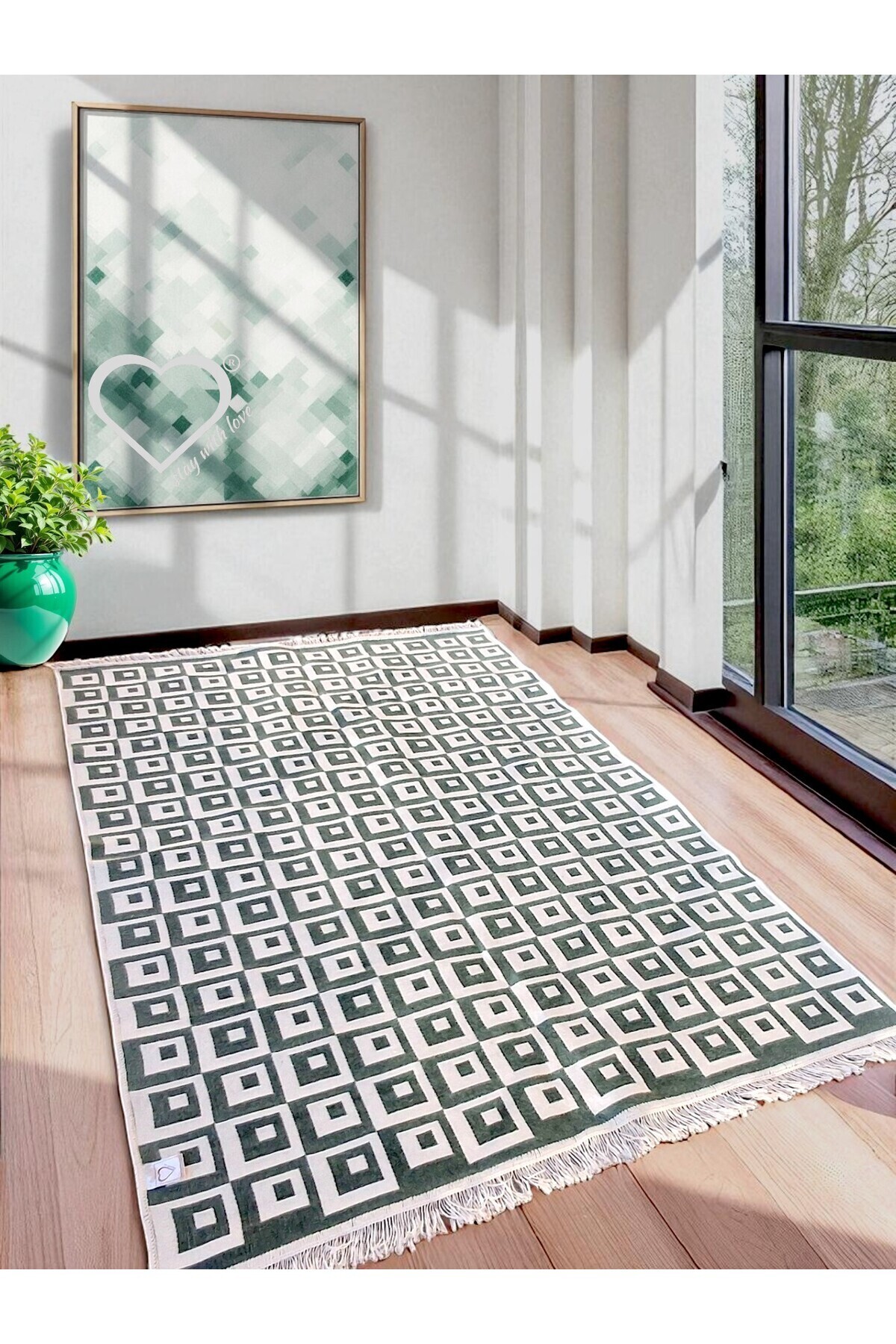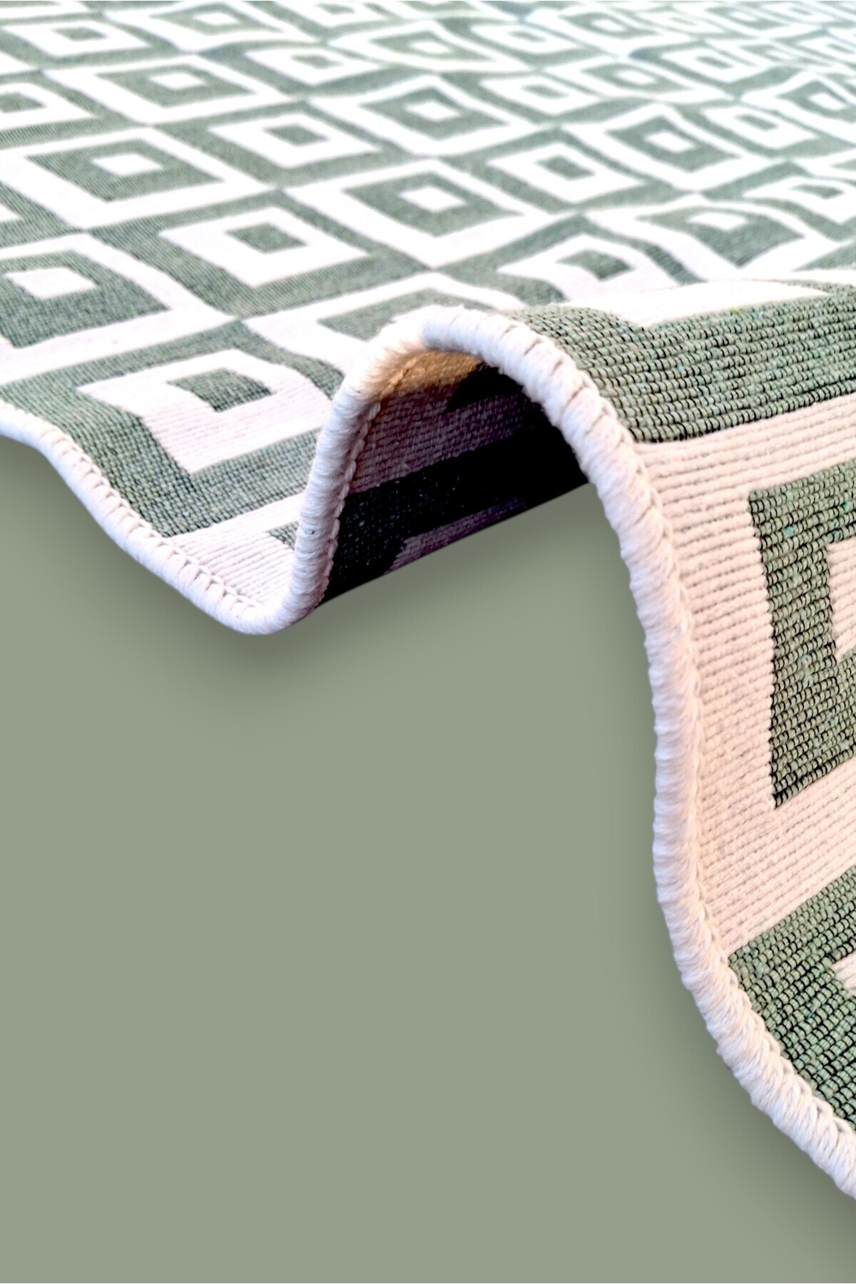 Kilim Çift Taraflı Kullanılabilir Makinede Yıkanabilir Dokuma Kilim , Mutfak Halısı Yeşil Beyaz Kilim Çift Taraflı Kullanılabilir Makinede Yıkanabilir Dokuma Kilim , Mutfak Halısı Yeşil Beyaz SWLRUG2025010 120 x 180