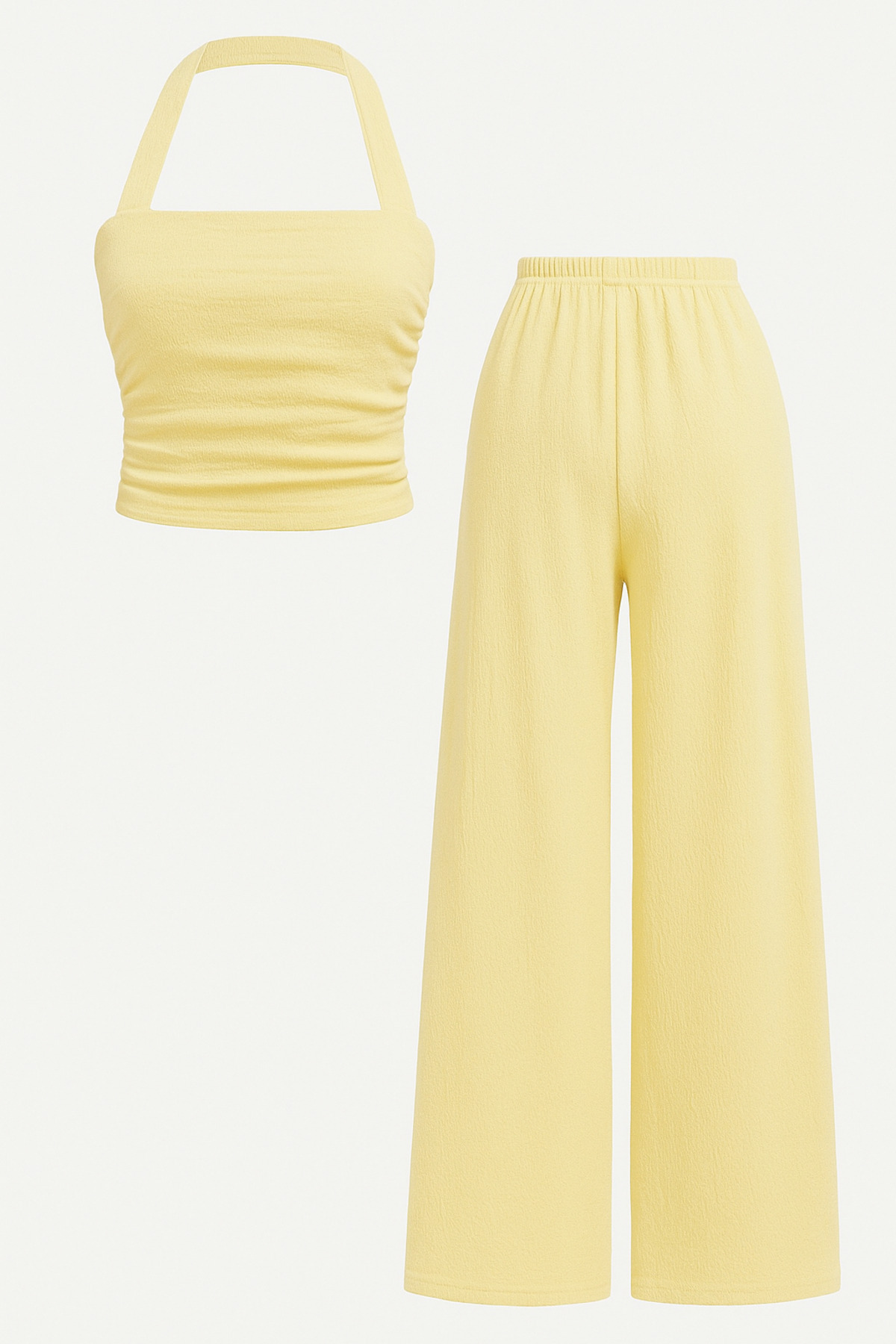 Tereyağı sarı genis askili genis paça pantplpn alt üst takim Tereyağı sarı genis askili genis paça pantplpn alt üst takim kasım9090 XL