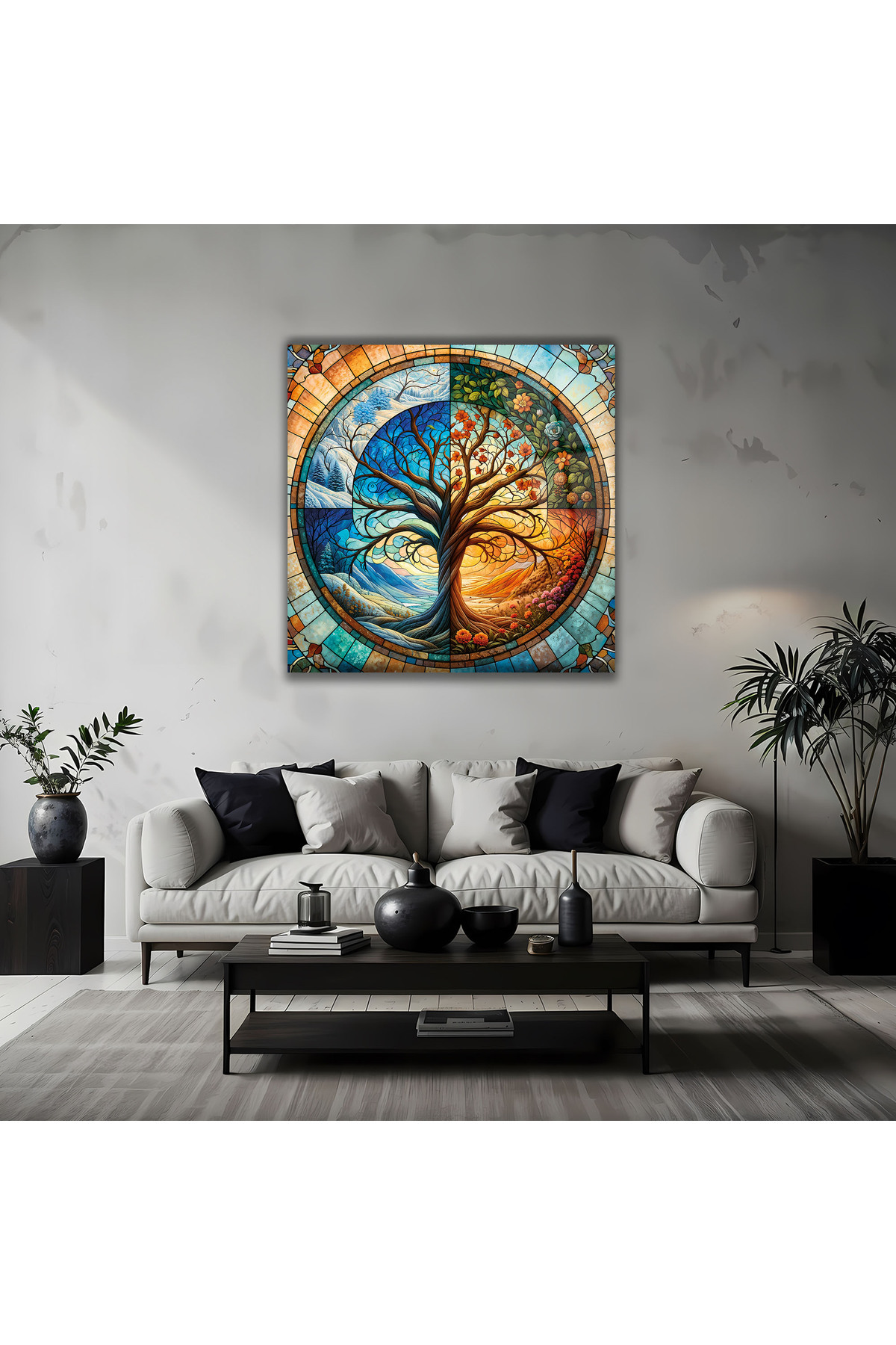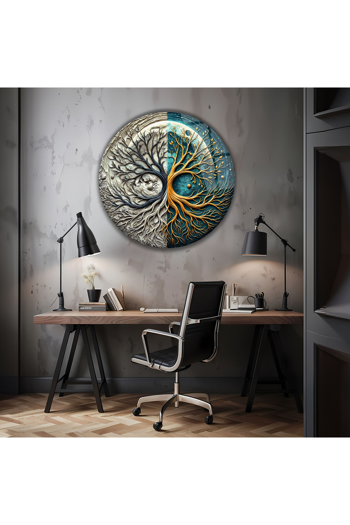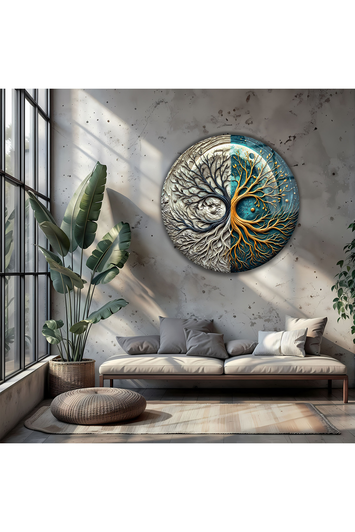 Hayat Ağacı Yin-Yang Ay & Güneş Cam Tablo Hayat Ağacı Yin-Yang Ay & Güneş Cam Tablo 1504 50 x 50