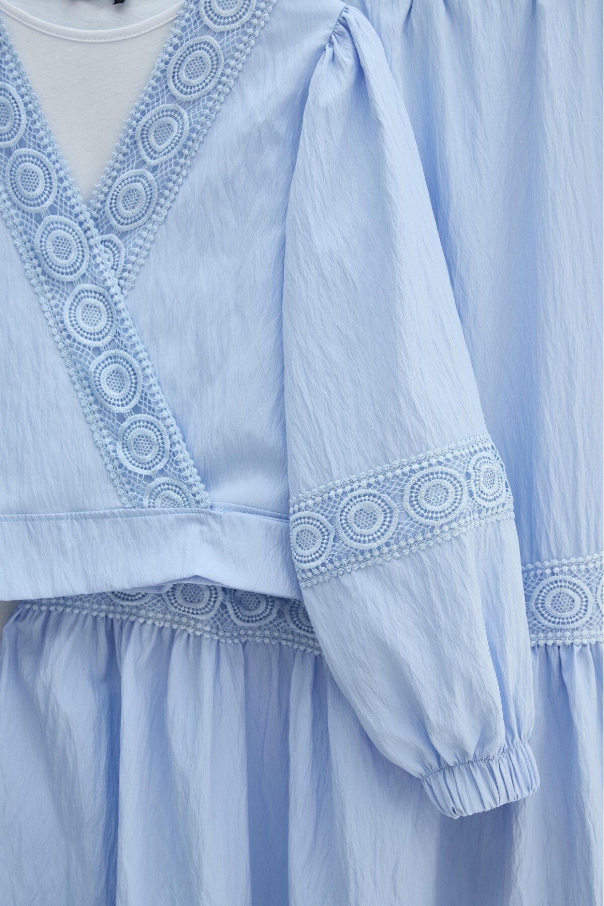 Dantel Detaylı Bağlamalı Kolu Lastikli Kraş Etekli Takım -Bebe Mavi Dantel Detaylı Bağlamalı Kolu Lastikli Kraş Etekli Takım -Bebe Mavi TY398-4020 42