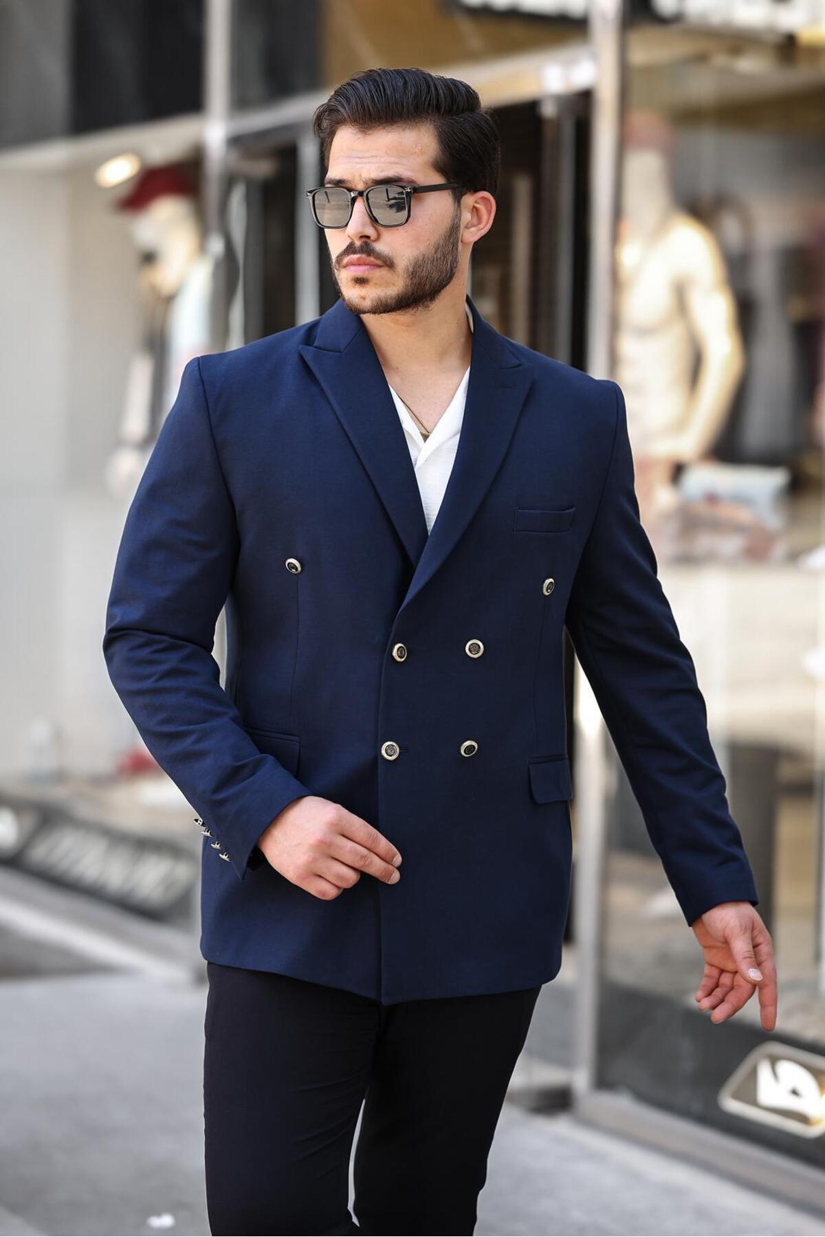 Erkek Lacivert Kruvaze Slim Fit Blazer Ceket Erkek Lacivert Kruvaze Slim Fit Blazer Ceket 249 56