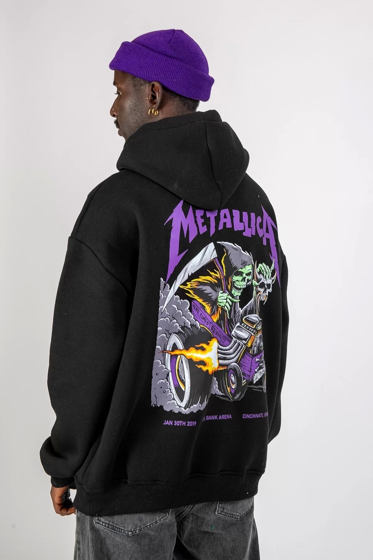Metallica Mor Sırt Baskılı Siyah Oversize Kapüşonlu Metallica Mor Sırt Baskılı Siyah Oversize Kapüşonlu 816E0943 XL